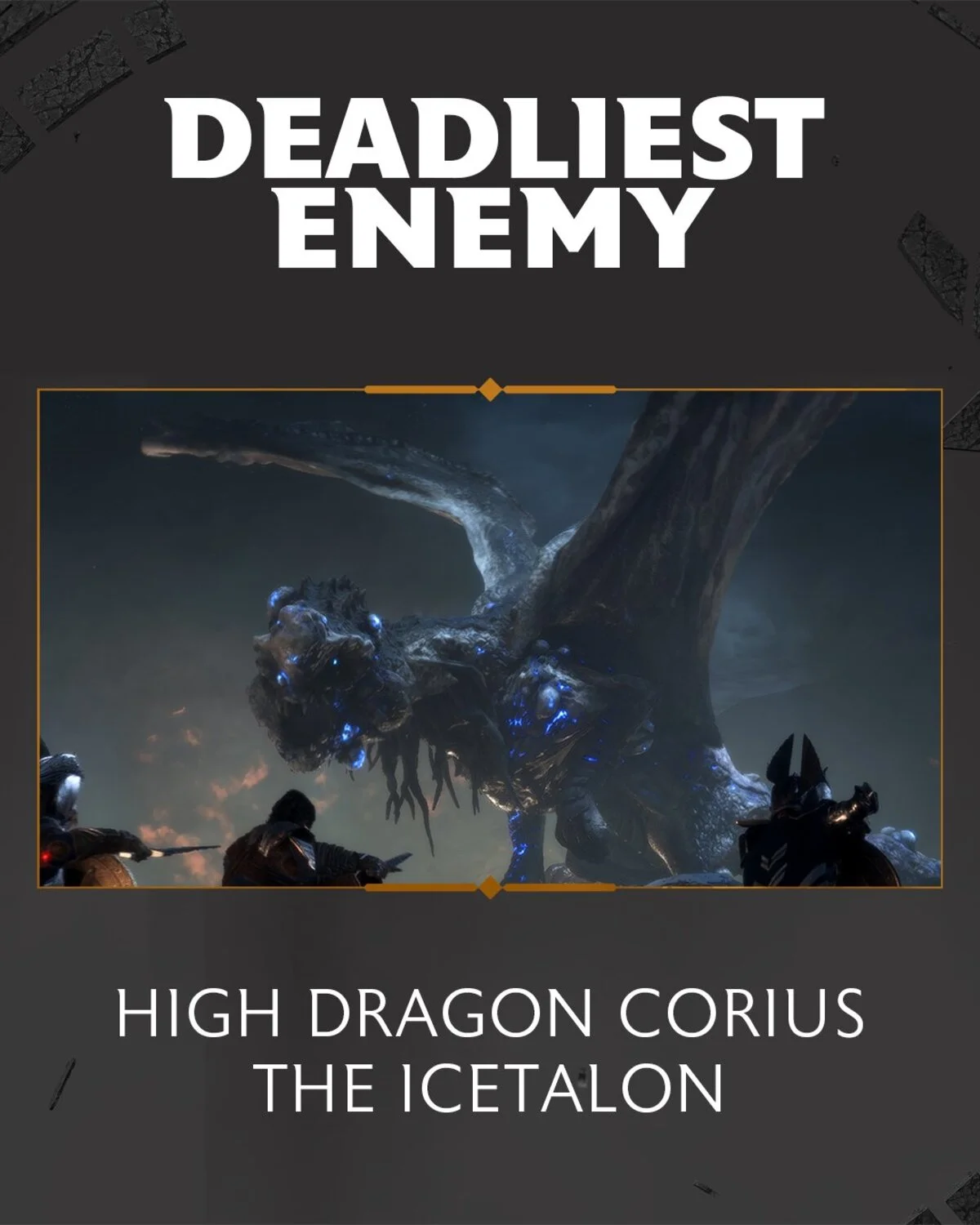 Кроме того, стал известен квест с наибольшим числом смертей — «Море крови», где нужно было спасти сопартийца по имени Луканис. Наиболее смертоносным противником признана ледяная драконица Кориус.