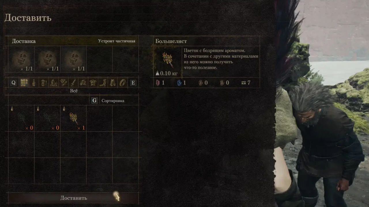 Обсуждая с ним ситуацию, вы выясните, что его беспокоит спина, и ему нужны три полевых цветка для быстрого приготовления лечебного зелья.