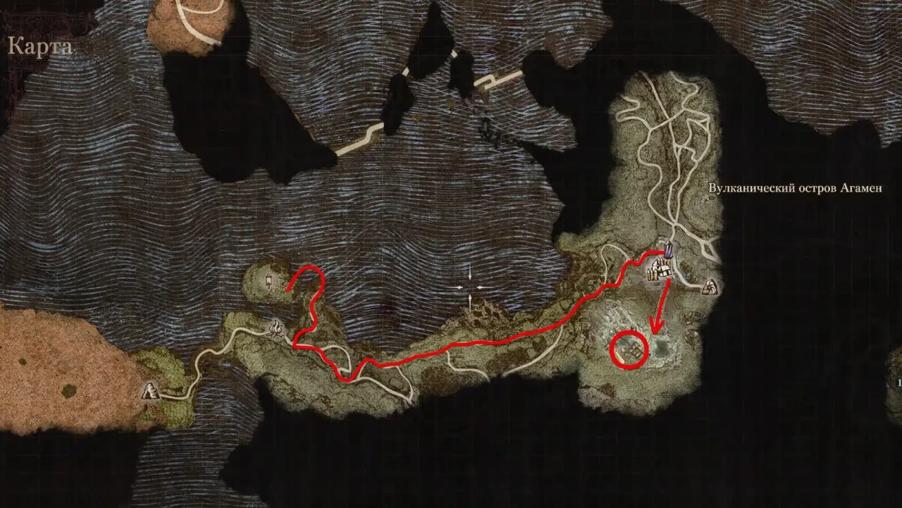 Достигнув Лагеря на Вулканическом острове, вам необходимо пройти его и подняться на возвышенность, где находятся горячие источники.