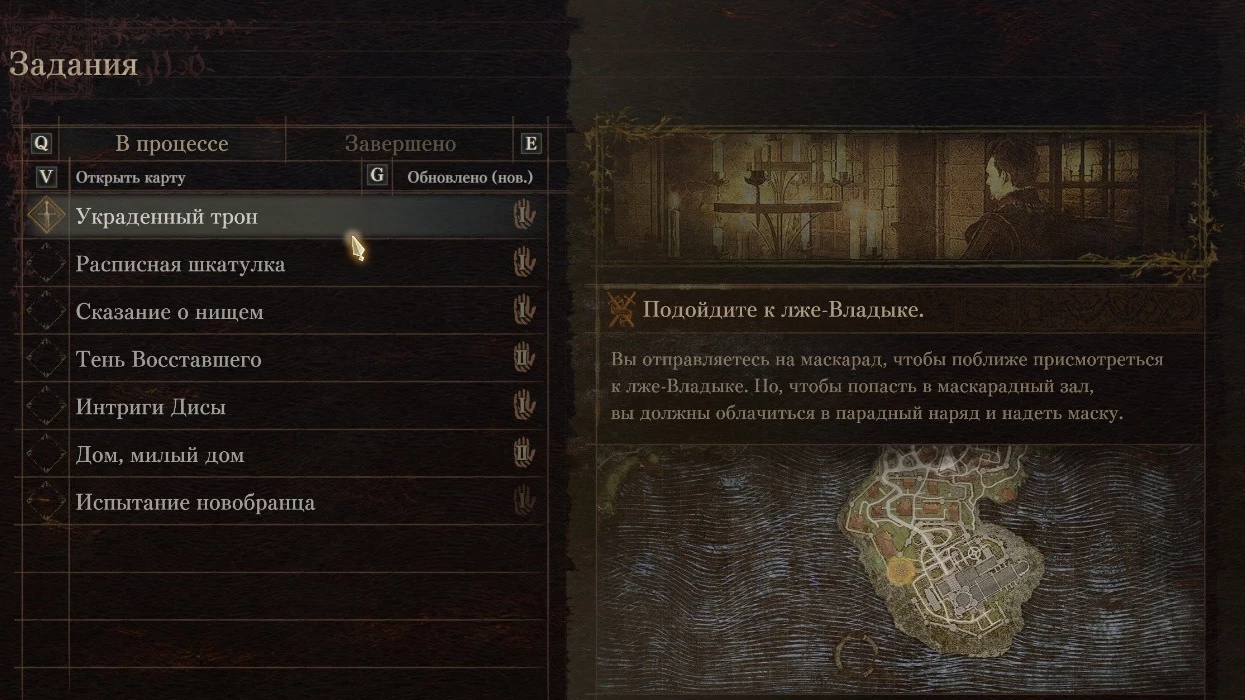 Для успешного выполнения задания вам предстоит проникнуть на готовящийся бал-маскарад, чтобы подобраться к самозванцу. Для этого необходимо одеться соответственно.