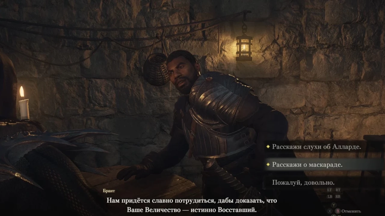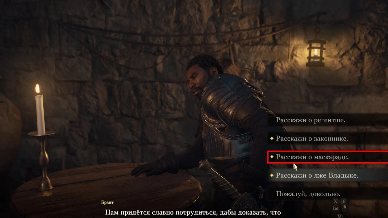 Когда вы снова встретитесь с Брантом в уютной гостинице «Звездная капля», готовы доложить о выполнении задания, в диалоге появится возможность расспросить его о предстоящем маскараде.