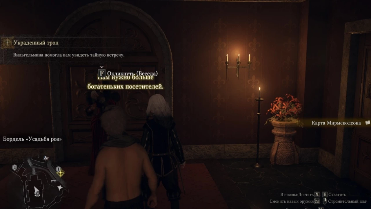 Куртизанка окажется на вашей стороне, проведя вас в тайную комнату борделя, где вы сможете ускользнуть от стражников и подслушать секретный разговор лже-Владыки с его сообщницей сквозь дыру в стене.