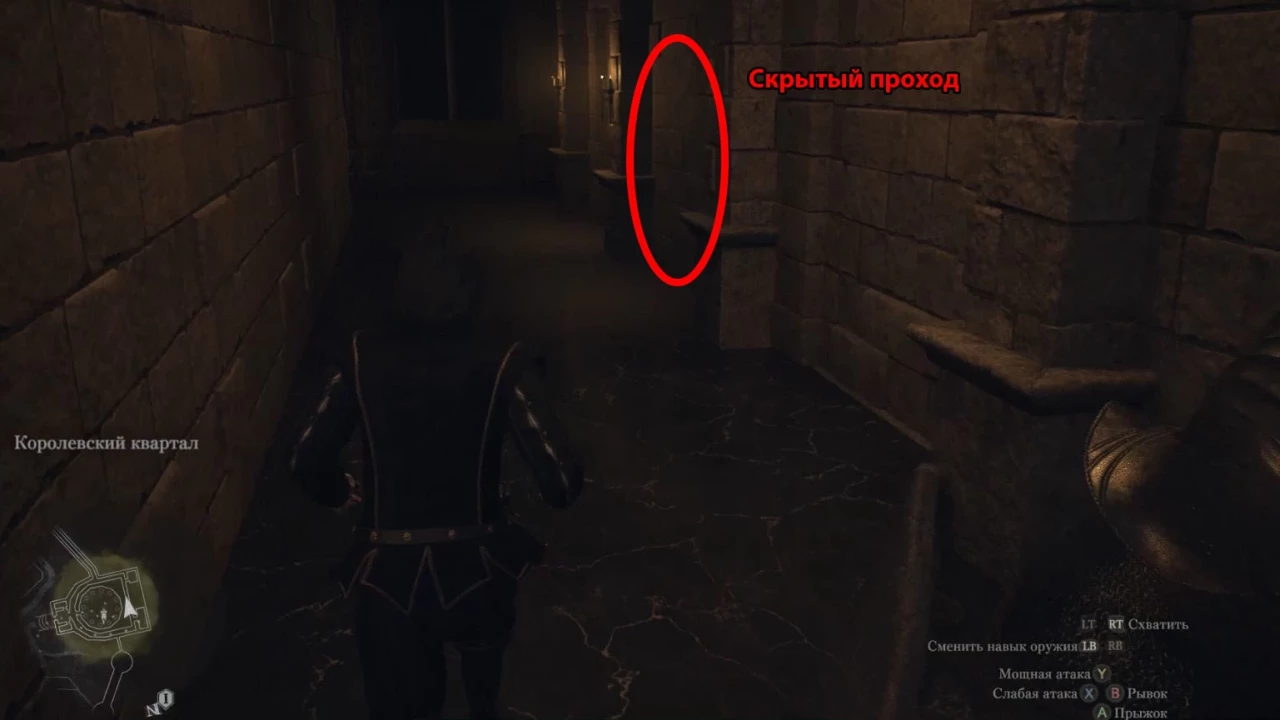 Если свернуть налево у выхода и проследовать по коридору, вы не встретите злоумышленника — он исчез бесследно, воспользовавшись тайной дверью между колоннами.