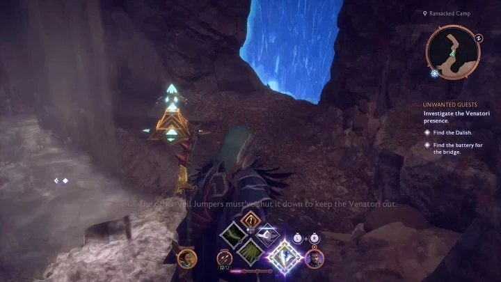 По мере продвижения по мосту встречается большая группа венатори, с которыми требуется сразиться. Рекомендуется использовать навыки области действия и отправить спутников отвлечь врагов. После победы над венатори игроку предстоит решить головоломку с факелами, при этом третий символ, необходимый для решения, упал со стены и лежит на полу.