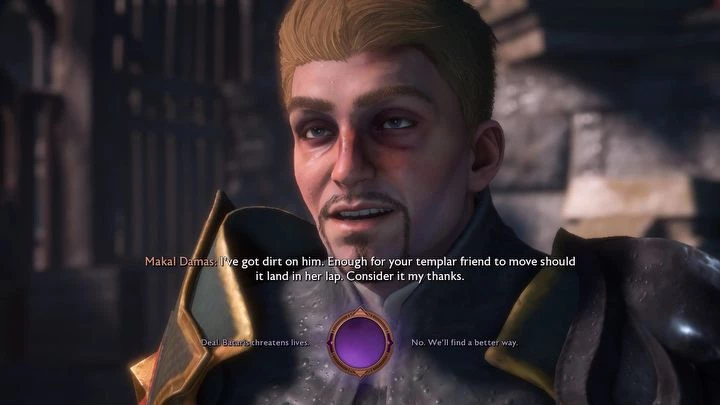 После победы над Дамасом вы столкнетесь с выбором о сотрудничестве с ним. Дамас обладает важными уликами против Батариса, культового преступника, с которым вы уже пересекались. Однако использование этих улик подразумевает сотрудничество с преступниками, что вызывает моральные сомнения. Вы можете согласиться на это сотрудничество или отказать, но ваш выбор не окажет влияния на итог — если вы откажетесь, Нив примет ваше место и согласится. Различие заключается только в ее отношении к вам: согласие на сотрудничество повысит вашу репутацию в ее глазах, тогда как отказ снизит ее симпатию к вам. В конечном итоге это приводит к завершению миссии, независимо от принятого вами решения.