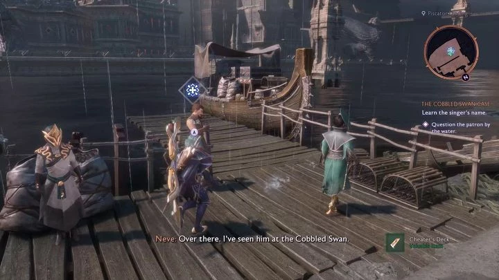 В главе 9 "Дело булыжного лебедя" игры Dragon Age Veilguard игрок начинает квест, расследуя похищение человека. Начните с осмотра помещения, включая перевернутый стол, царапины на полу, заднюю дверь со следами, лепестки цветов и сцену. Вы приходите к выводу, что певец мог быть свидетелем похищения, наблюдая со сцены.