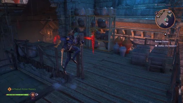 В девятой главе игры Dragon Age Veilguard, под названием "Дело булыжного лебедя", игрокам предстоит вернуться в место встречи с Ниру, где расположен барьер Венатори. Для продвижения необходимо преодолеть барьер, после чего на игрока нападет группа культистов. Задача заключается в том, чтобы уничтожить всех Венатори на рынке за барьером и найти кристаллы, которые его образуют; они расположены на верхнем этаже.