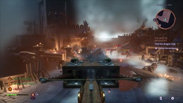 В главе 8 "Осада Вейсхаупта" игры Dragon Age Veilguard игрок начинает квест во дворе Вайссхаупта, сталкиваясь с атакующей армией Порождений Тьмы. Во время сражений главными угрозами являются бронированные враги с топорами и далекие враги, метающие копья. Стратегия заключается в том, чтобы прорваться к копейщикам, чтобы минимизировать урон от дальнего боя.