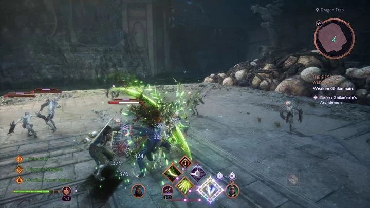 В боях с архидемоном в «Dragon Age Veilguard» преобладают три фазы. Первая фаза проста: архидемон использует медленный рывок, после которого временно становится уязвимым. Игроки должны атаковать его на земле, заполняя шкалу ошеломления. Когда появляются кисты на шее, они становятся слабыми местами.