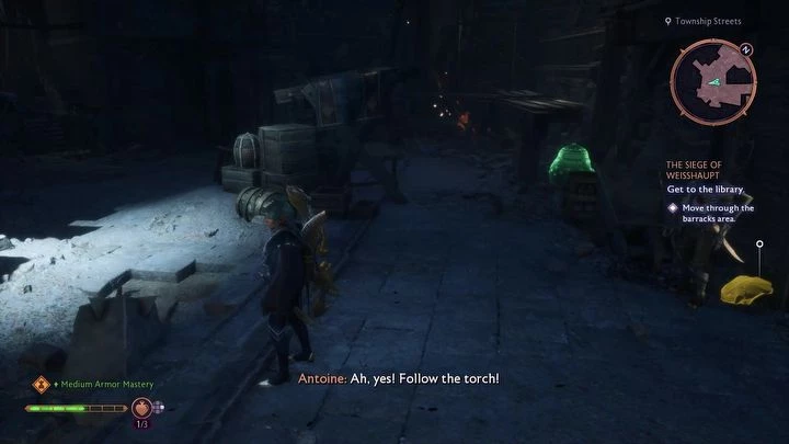 Далее, игроки продвигаются через казармы, уничтожая меньшие порождения тьмы и кисты, что остановит появление новых врагов. После еще одной битвы с мини-боссом, нужно быть внимательным к взрывоопасным бочкам для устранения копейщиков.