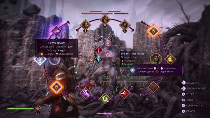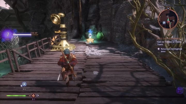 Достигнув нового места, следует устранить врагов на площади и подойти к воротам, покрытым корнями, для их открытия. Для этого нужно победить чемпиона, который появляется после уничтожения чумной кисты, и разместить два лазерных излучателя для питания кристаллов над воротами. Первый излучатель находится на лестнице справа у ворот, а второй — на верхнем уровне.