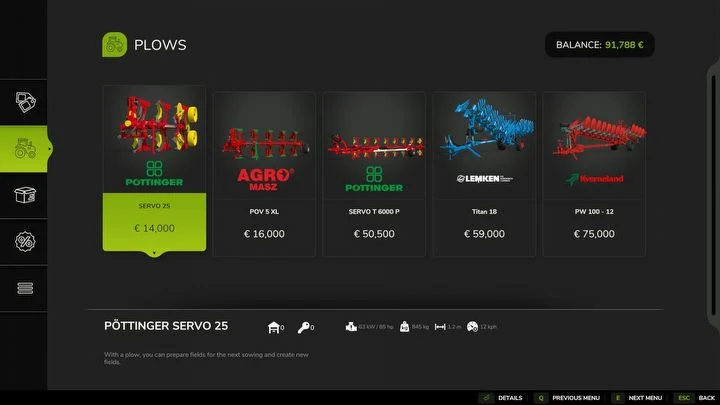 Для выполнения вспашки вам понадобятся плуги, глубокорыхлители и мотоблоки. Плуги способствуют глубокой вспашке и позволяют формировать новые поля при активации нужной функции (клавиша Y). Глубокорыхлители выполняют более легкую вспашку быстрее, чем плуги, и могут иметь дополнительные модули, например, сеялку, однако они не позволяют создавать новые участки и вытаскивают меньше камней.