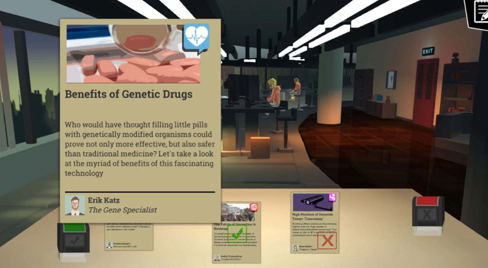 Игровой процесс сосредоточен на выявлении девиантов среди допрашиваемых и принятии решений о их будущем. Тем, кто насладился атмосферой Detroit: Become Human, но желает более легких механик, стоит обратить внимание на этот тайтл. Авторы подготовили несколько концовок, которые напрямую зависят от выбора игрока.
