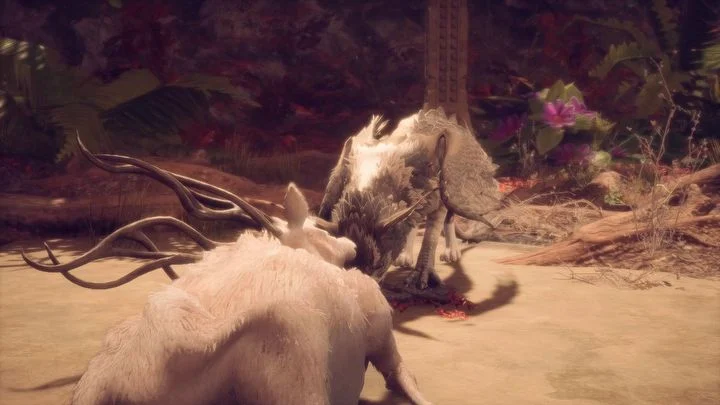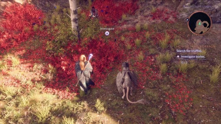 Продвигайтесь по тропинке, слушая диалоги героев. Как только доберетесь до указанного места, вам нужно будет осмотреть три локации в поисках трюфелей. Нужные кусты находятся рядом — просто подойдите к красным кустам около деревьев и активируйте действие.