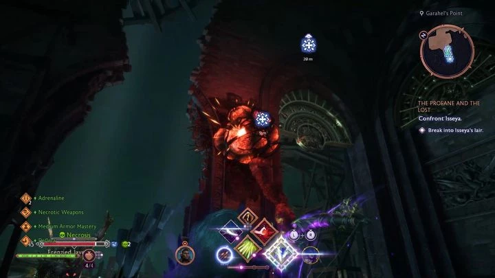 Иссею можно убить довольно быстро — у неё низкий уровень здоровья, и она легко оглушается, так что, как только удастся её оголить, атакуйте всеми силами. После того как босс попытается убежать, следуйте за ней и продолжайте уничтожать кисты, которые сделают её вновь неуязвимой. В финале битвы Иссея захватит Ассан, и начнется диалог. Если у вас есть перо грифона, вы можете воспользоваться им для её капитуляции. В противном случае, Даврин и Ассан вместе уничтожат Иссею в кат-сцене.