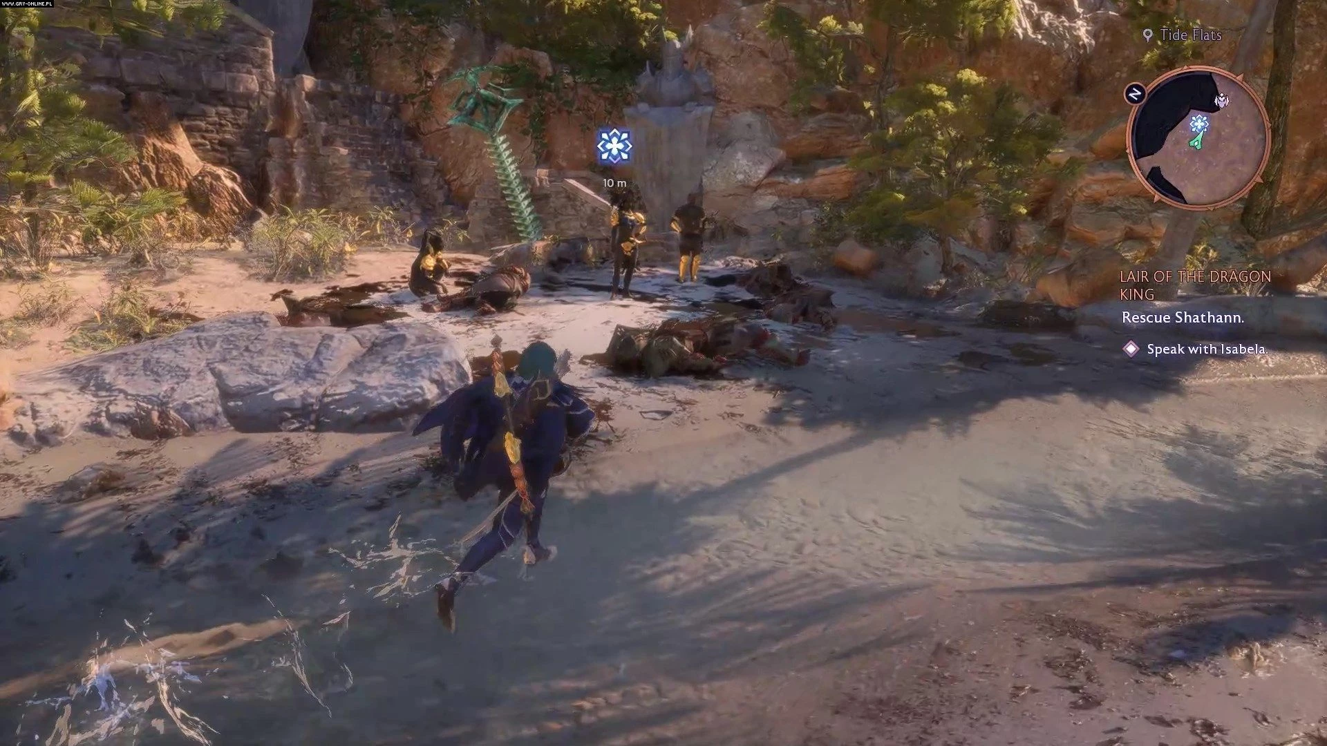 Поднимитесь по скалистым участкам, чтобы достать до птичьего гнезда, которое находится на вершине. Чтобы подняться туда, используйте способность Луканиса для создания костяного моста. Вернувшись с сокровищем, направляйтесь на пляж, чтобы привлечь Катаранду.