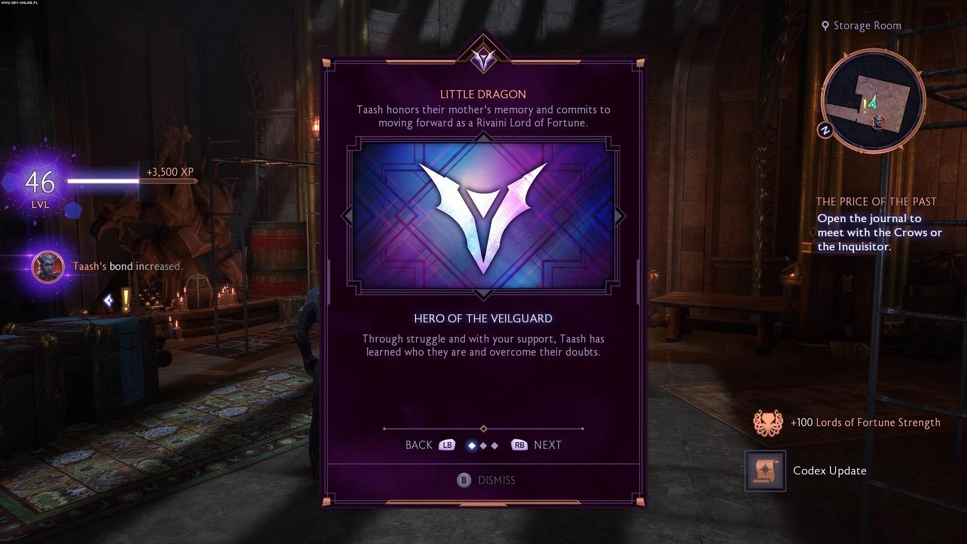 После встречи с Таашем вы станете свидетелем беседы с Каттером. Воин будет настаивать на необходимости выслеживания дракона Кальтенцана. Рекомендуем выбирать диалоговые варианты, которые поддерживают Тааша, чтобы заработать его расположение.