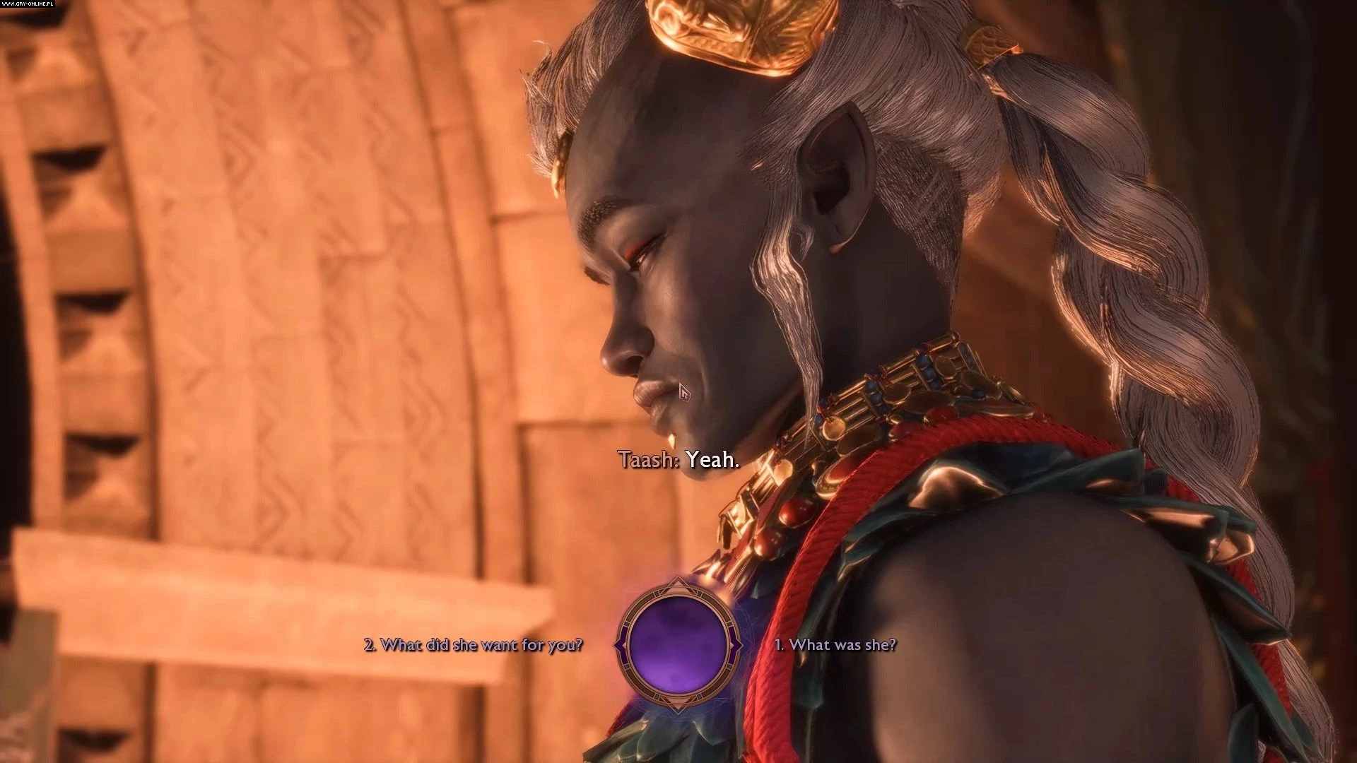 Следующий квест с Таашем станет доступным после осады Вайсхаупта и встречи с Архидемоном. Вернувшись в Маяк, зайдите к Тааш в её покои.