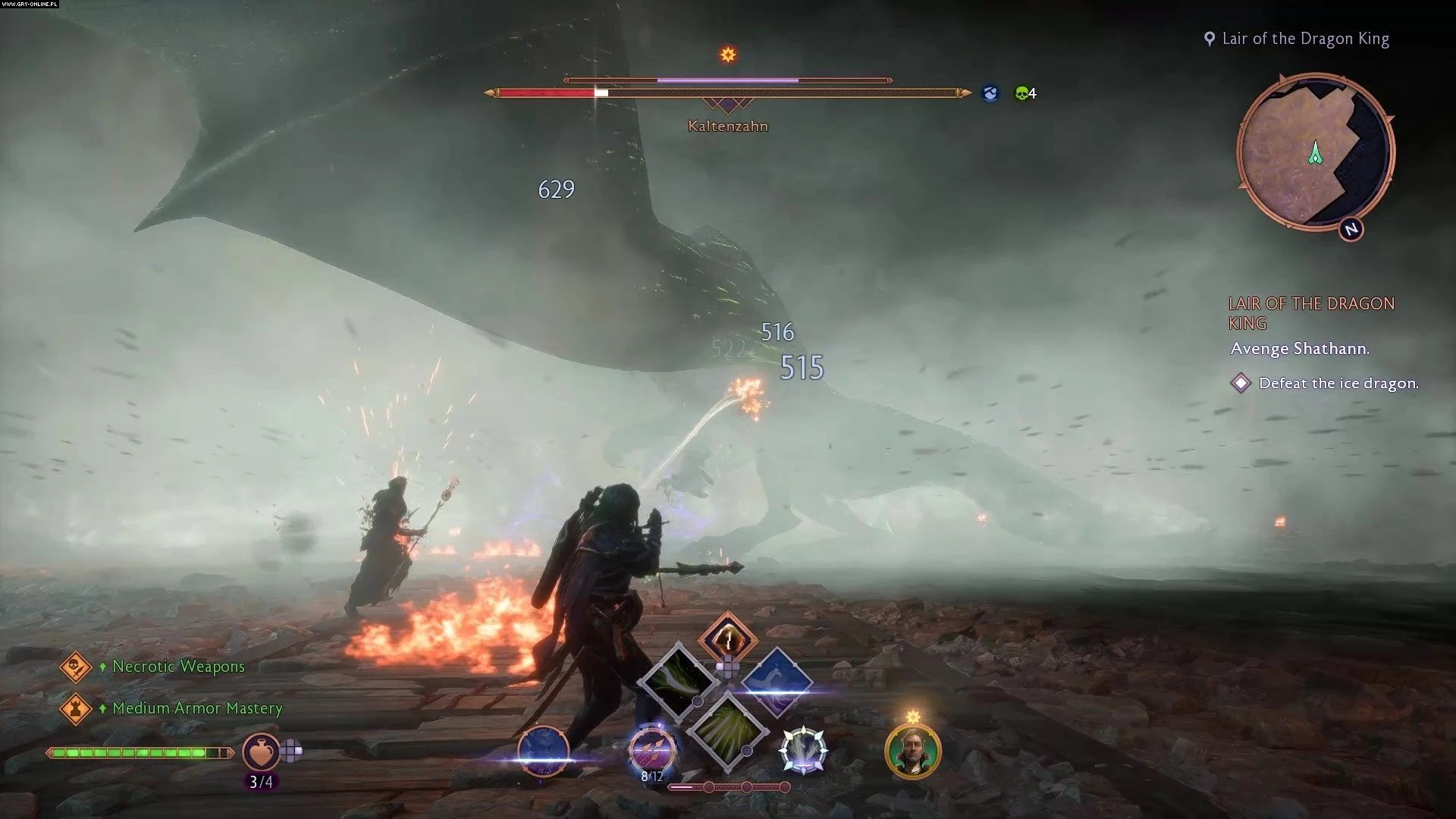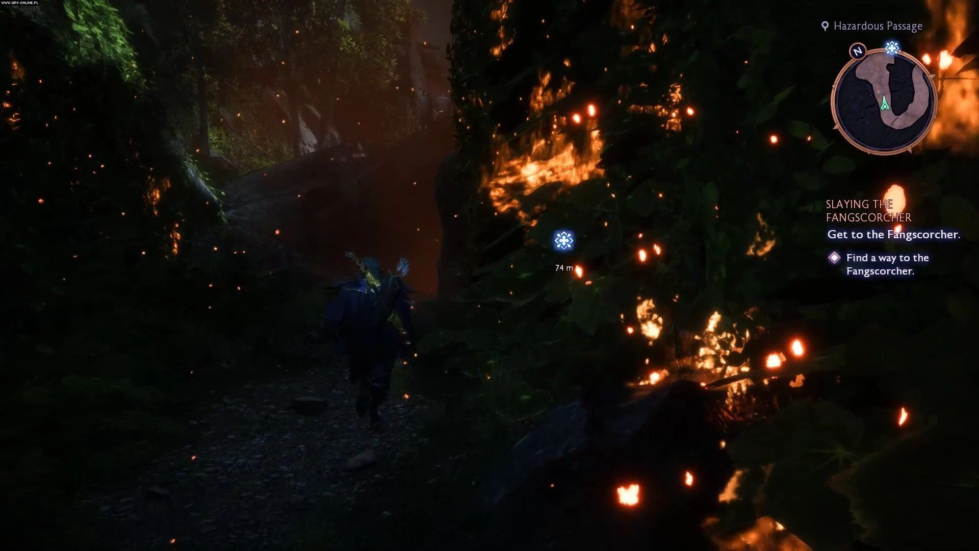 В финале пути вы окажетесь на обширной арене, где сразитесь с Fangscorcher. Он атакует почти так же, как и драконы, с которыми вы уже сталкивались в миссиях «На зависть опустошенным» и «Огонь и лёд». Будьте осторожны с его атаками ближнего боя, огненными ударами и старайтесь поражать его уязвимые места — светящуюся ногу или голову. Иногда он может забраться на близлежащие руины и атаковать вас огнём. Постарайтесь отразить выстрелы или уничтожить их, прежде чем они достигнут вас, дождавшись, пока дракон вновь окажется на арене. После победы над Fangscorcher зайдите в его сокровищницу и поговорите с Таашем для завершения квеста.