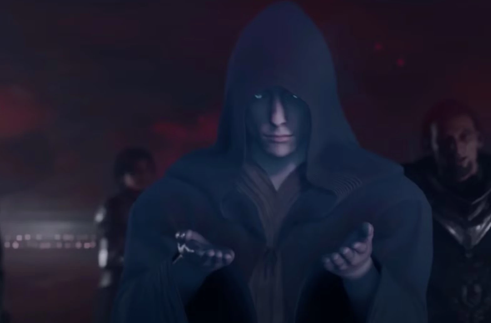 Во время титров вы можете встать с трона и прогуляться по залу, среди толпы, пришедшей воздать вам почести, выделяется призрачная фигура в капюшоне.