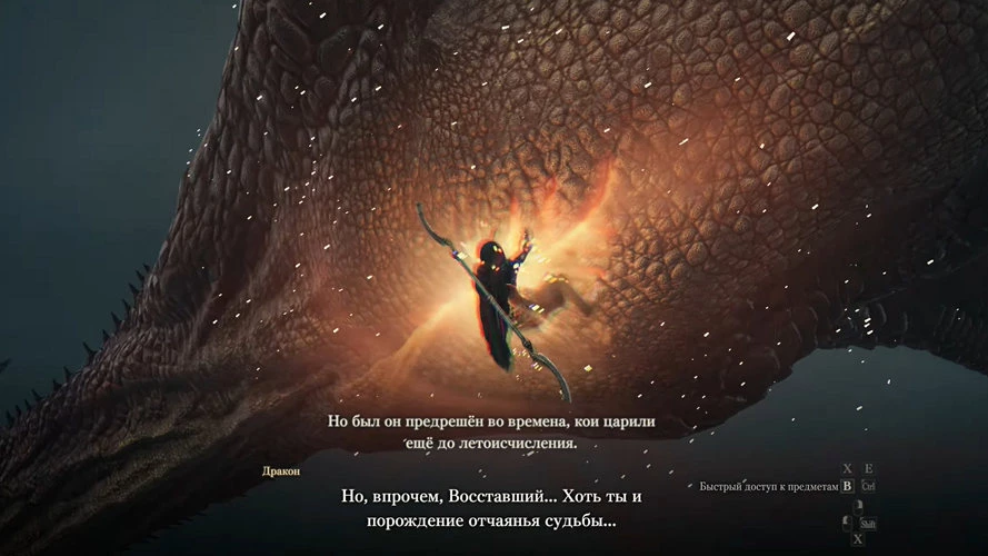 В тот же миг вы снова окажетесь на спине дракона перед финальной битвой, и узнаете, что нет нужды безропотно выслушивать его речи.