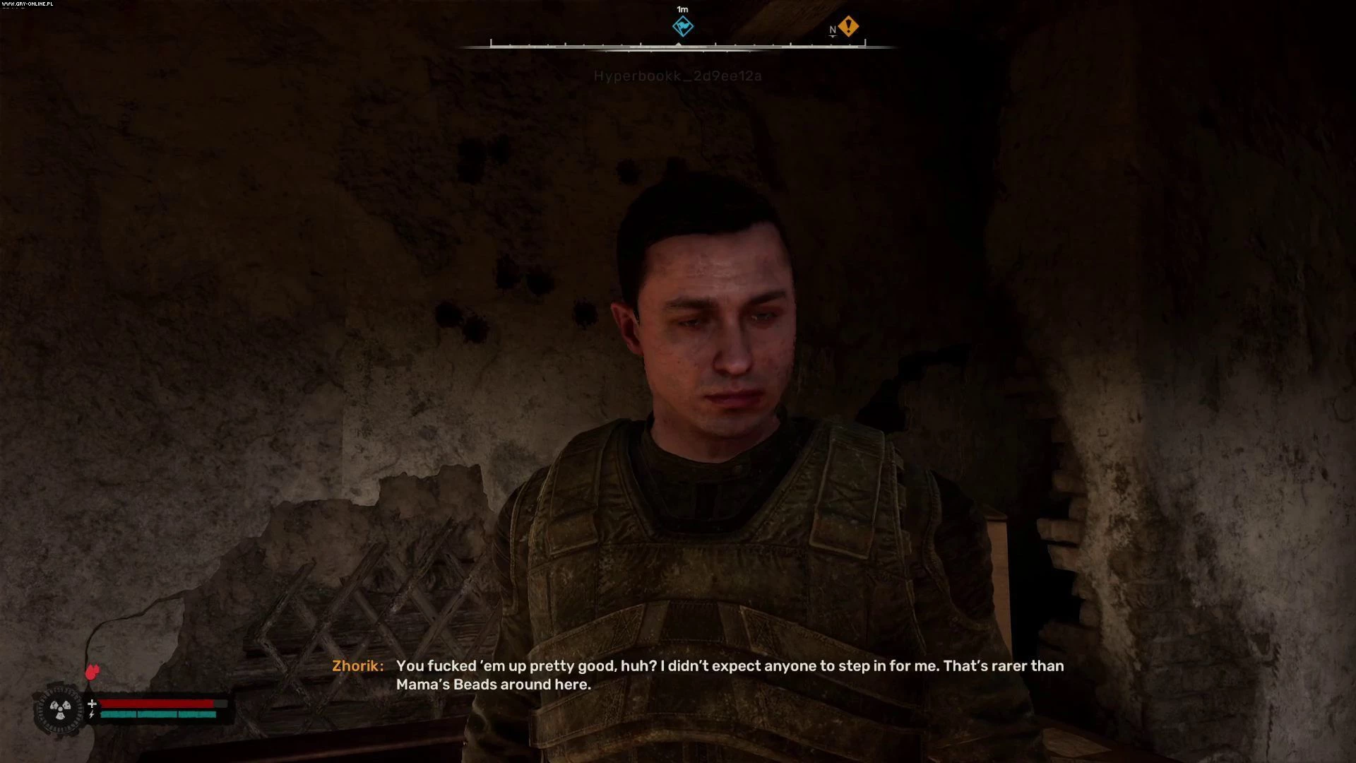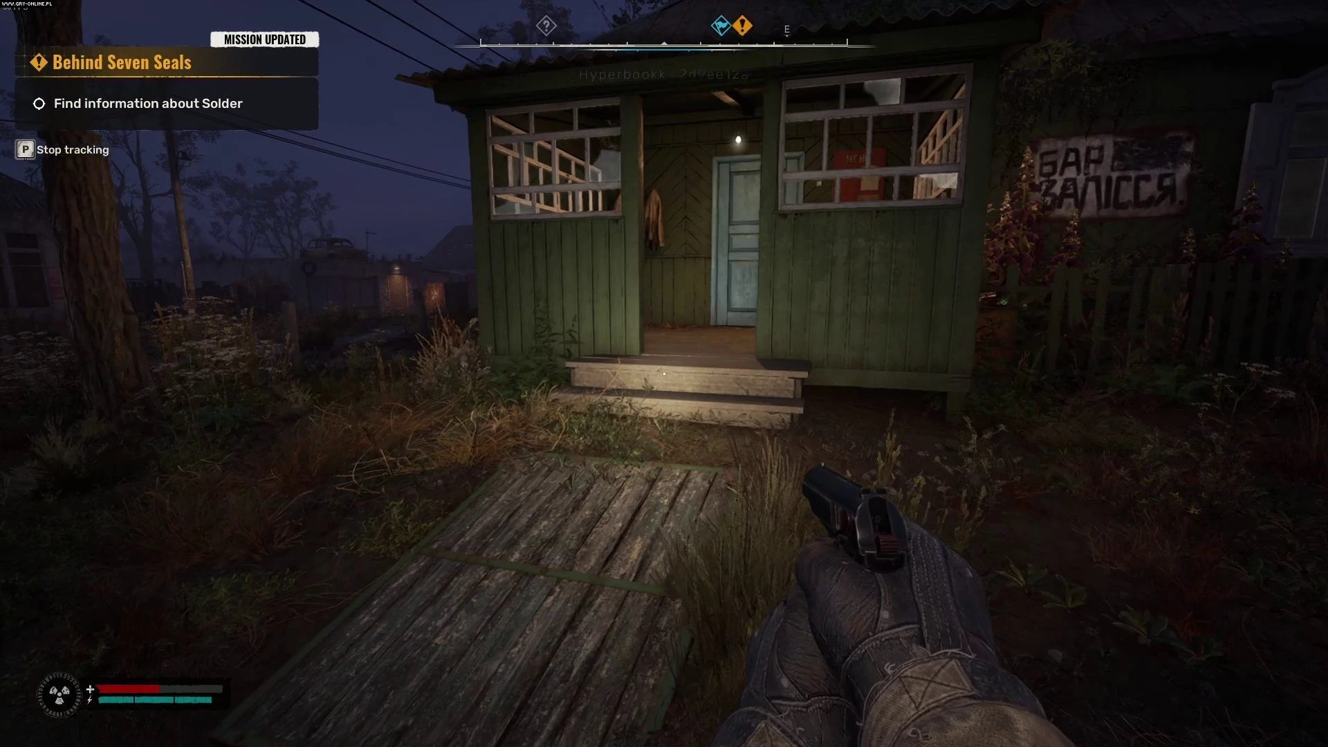 В следующем шаге игрок направляется в бар, который находится в центральной части поселения и обозначен зеленым зданием. Там он станет свидетелем напряженного разговора между персонажами Гаффером и капитаном Зотовым. По завершении их беседы данный квест считается выполненным.