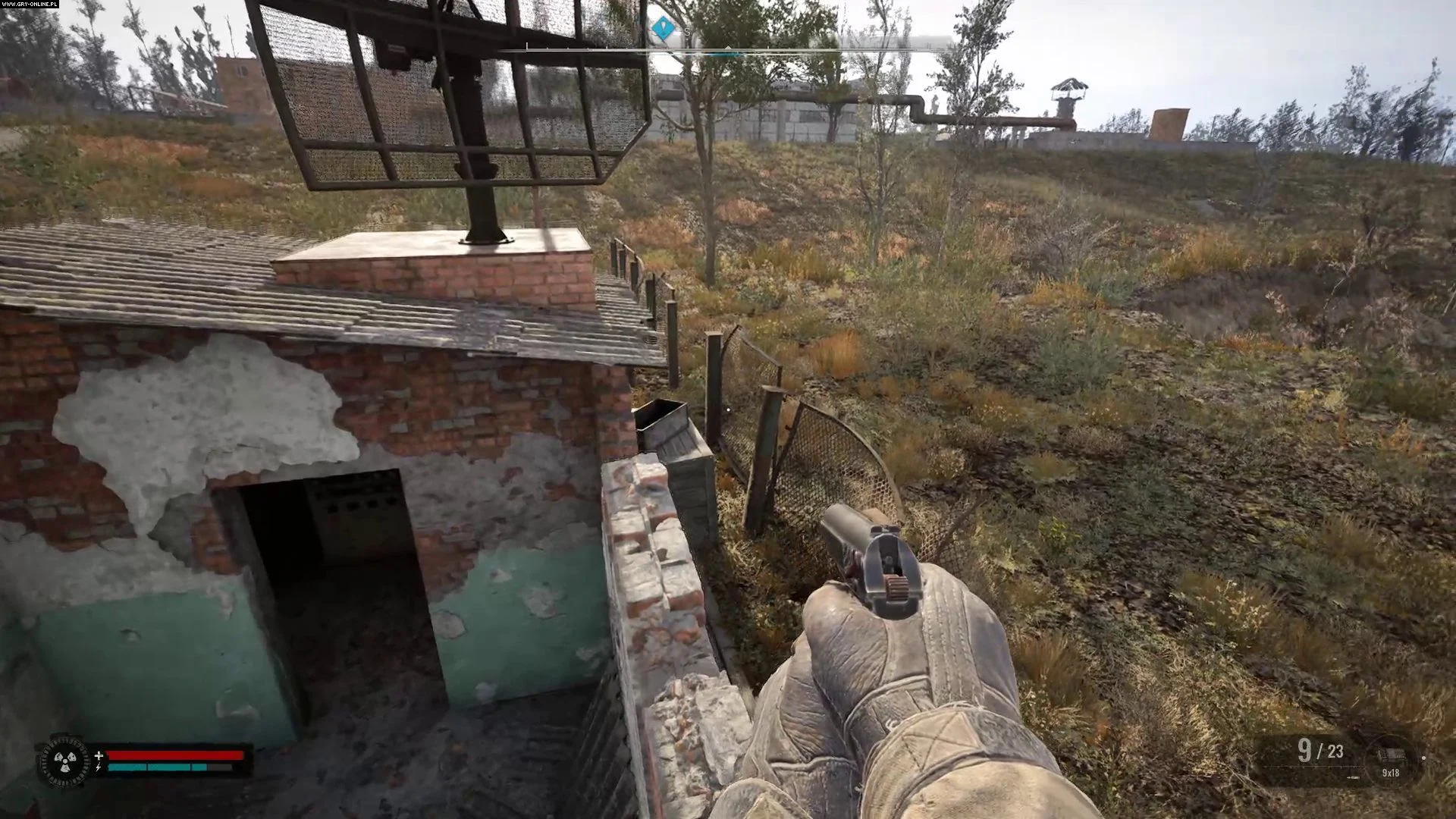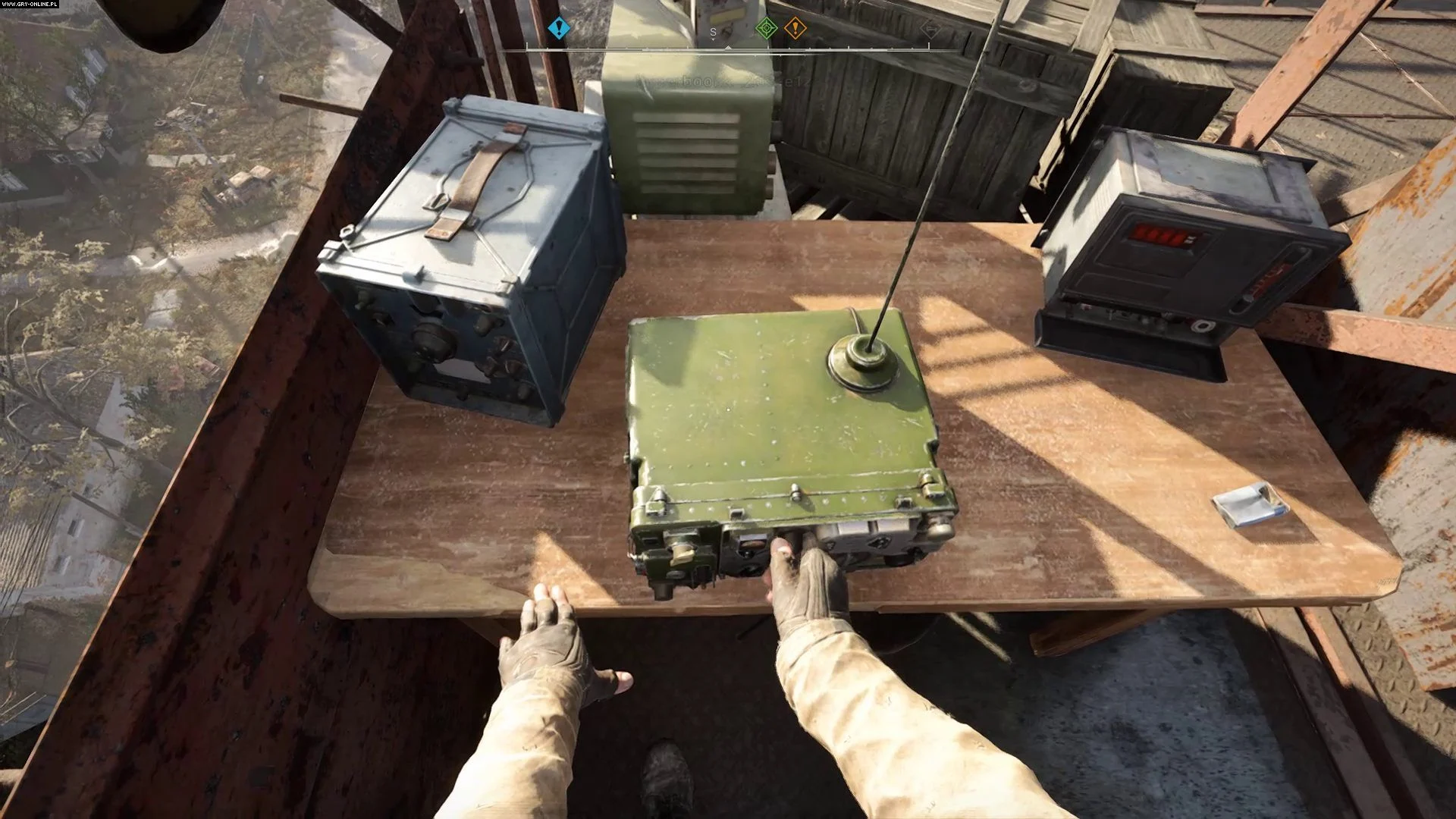 Для активации антенны поднимитесь на крышу этого здания, используя разрушенные доски. Локализованный сигнал КПК сообщит вам о укрытии Сквинта.
