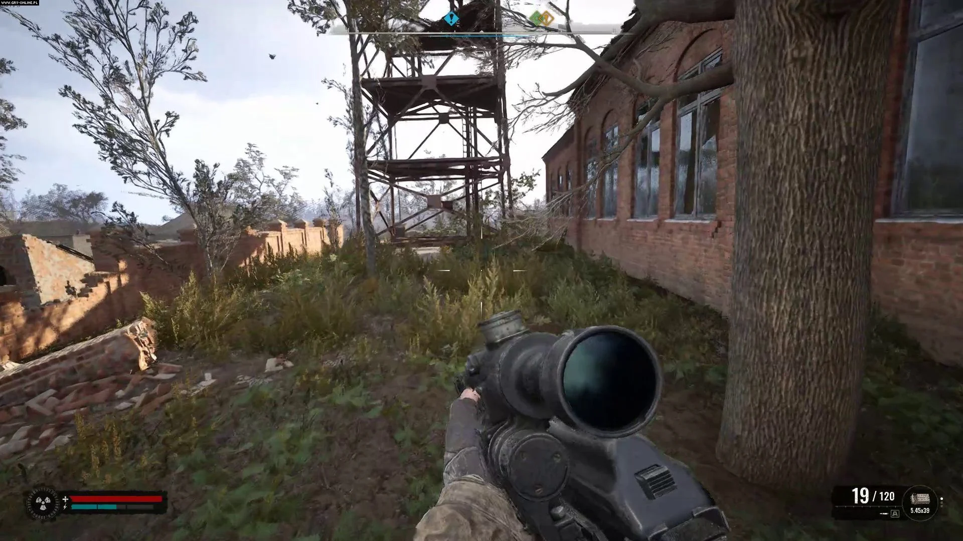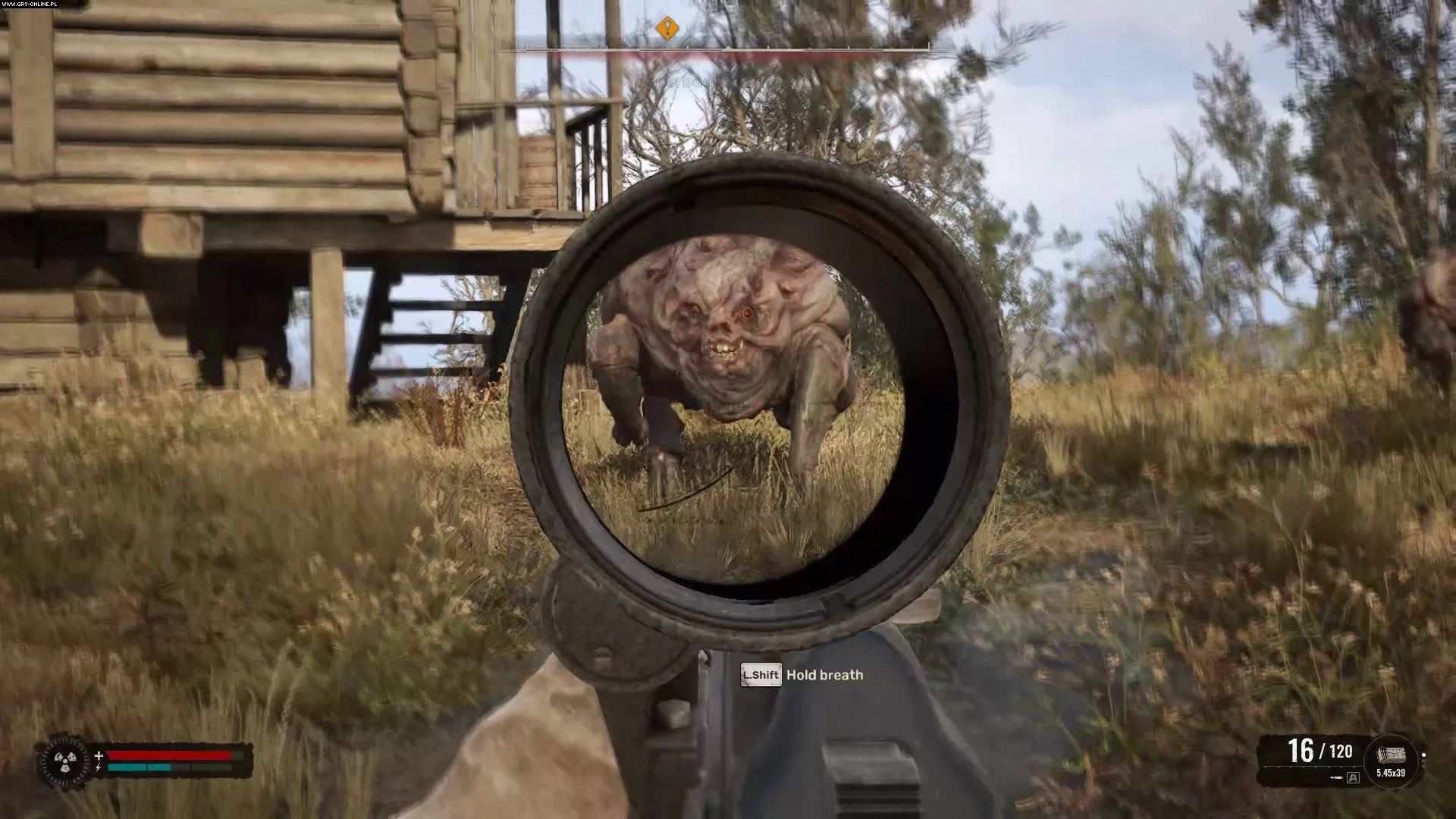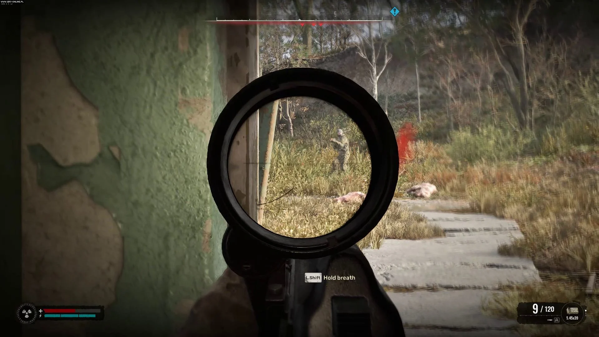 Сквинт укрывается в заброшенной мельнице, расположенной чуть северней антенны. Вокруг деревянного строения прогуливаются несколько мутировавших существ.