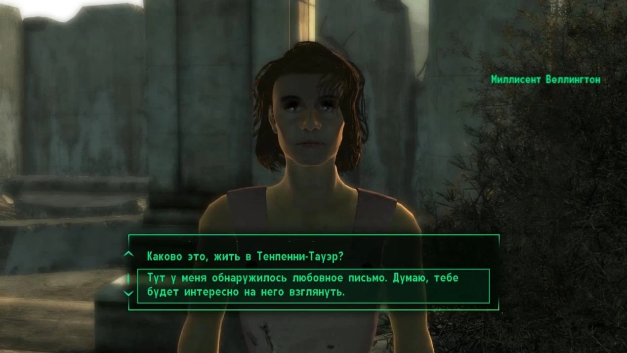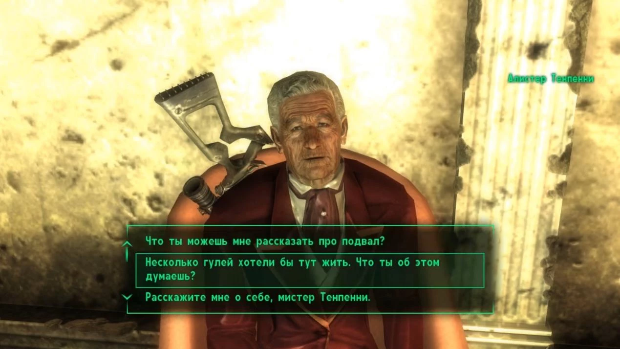 В заключение, Путник может проявить дипломатические способности, добывая согласие Алистера Тенпенни и поддерживая переговоры с жителями Тенпенни-Тауэр.