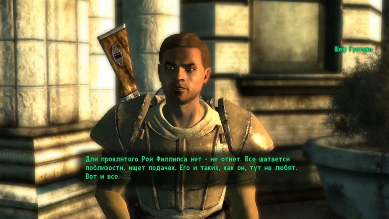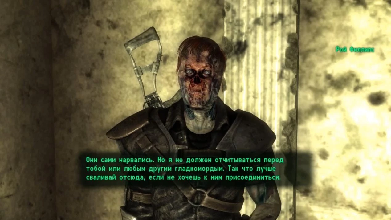 Следующий виток событий связан с Роем Филлипсом. В ходе первой встречи у ворот Тенпенни-Тауэр это невозможно осуществить. Поэтому Путнику следует обратиться к Густаво, а затем либо к гулям, либо сразу последовать за Роем к Депо Уоррингтон.