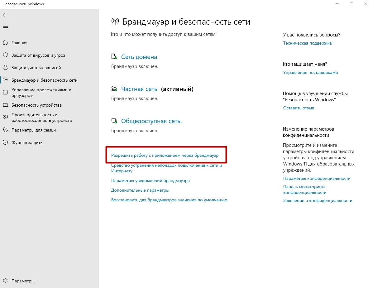 В открывшемся окне нажмите «Разрешить работу с приложением через брандмауэр».