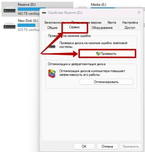 Для начала откройте Проводник и выберите диск, на котором установлен Steam или игра. Кликнув правой кнопкой мыши, выберите пункт «Свойства». Перейдите на вкладку «Сервис» и нажмите кнопку «Проверить» в разделе «Проверка диска на наличие ошибок файловой системы».