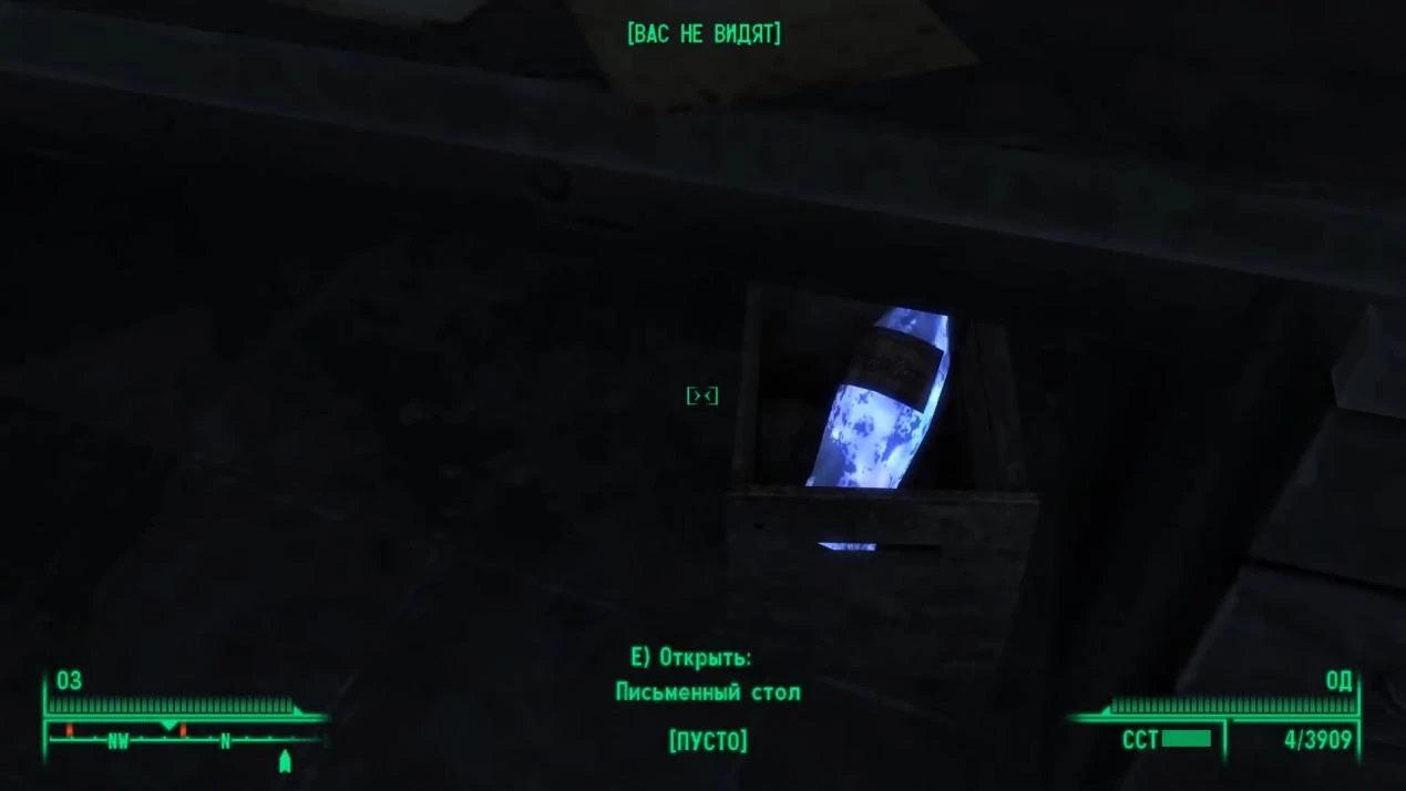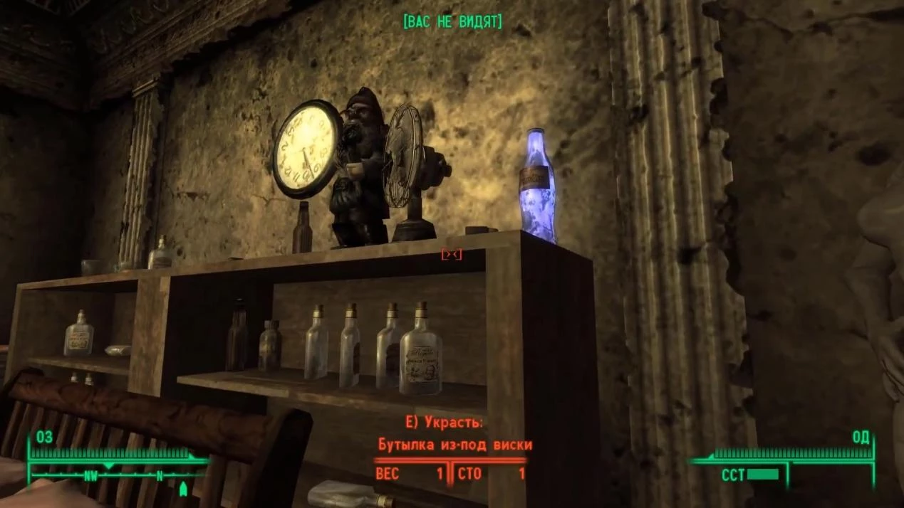 В Крайслус-билдинг Путник прихватит бутылочку, что спрятана под столом. Последняя, в свою очередь, находится в помещении, куда можно попасть, проследовав налево от входа (первый этаж).