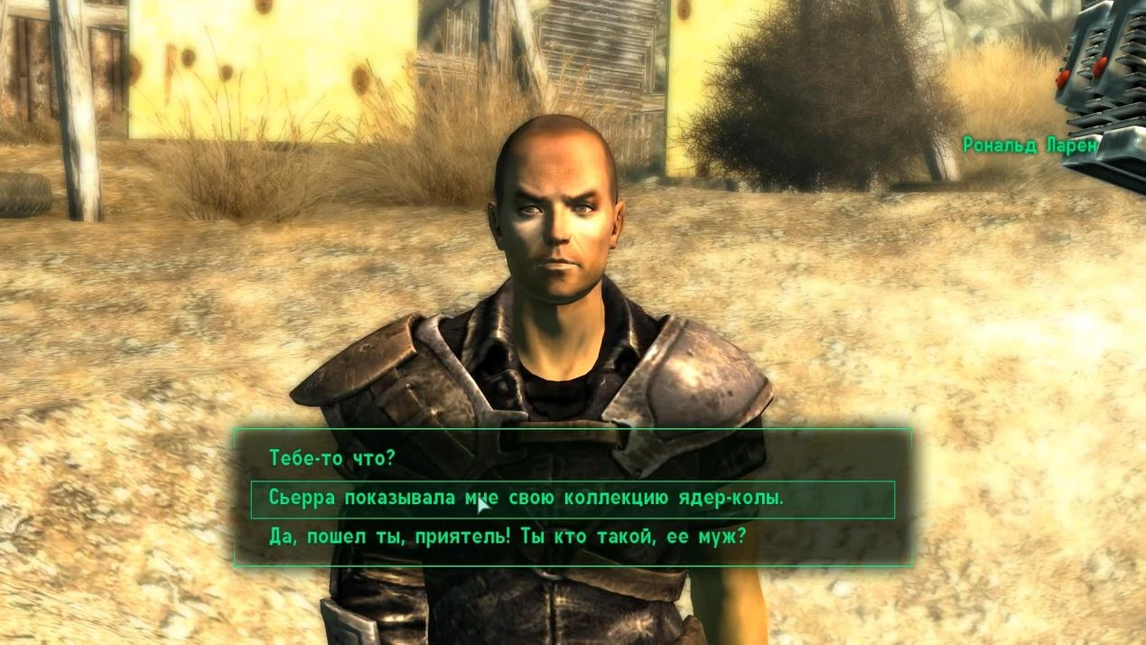 Также на пути Путника встретится Рональд Ларен, одержимый своей страстью к Сьерре. Он предложит сделку: бутылки в обмен на её расположение. С прокачанным «Красноречием» игрок сможет увеличить стоимость ядер-колы до восьмидесяти крышек, но помощь Рональду негативно скажется на карме. Если Путник - женщина с «Черной вдовой», он способен заставить Рональда собирать ядер-колу самостоятельно, но это может привести к его гибели.