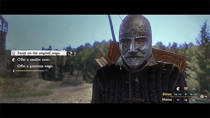 Встретитесь с Мариусом вновь. Он озвучит условия, необходимые для восстановления жизнедеятельности деревни. Однако Мариус не станет работать безвозмездно. Он потребует от вас оплату, которая окажется выше той суммы, что озвучил вам Дивиш. Вы можете согласиться с его условием или попытаться склонить его к меньшему вознаграждению с помощью навыка Убеждение (желательно иметь как минимум 12 очков в этом умении), чтобы предложить ему более низкую цену или «базовую» зарплату (это наиболее экономичный вариант). Минимальная ставка Мариуса составляет 55 золотых за день.