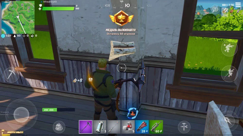 - Появилась возможность быстро излечить себя и друзей. Во второй главе Fortnite есть новое оружие — Бинтовая Базука — выпустив её заряд в товарищей по команде или себя под ноги, можно мгновенно вылечиться. Оружие занимает два слота инвентаря, но это того стоит.