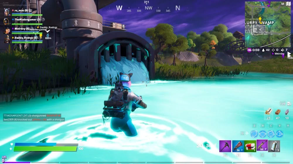 - Вода в локации Нектарная Низина восполняет щиты. На новой карте 13 локаций, названия которых будут скрыты до тех пор, пока вы не посетите их в первый раз (за это вы получите опыт — XP). Интересно, что стоя в светящейся воде, вытекающей из некоторых труб в местечке Болото Сларпи, можно восполнить щиты.