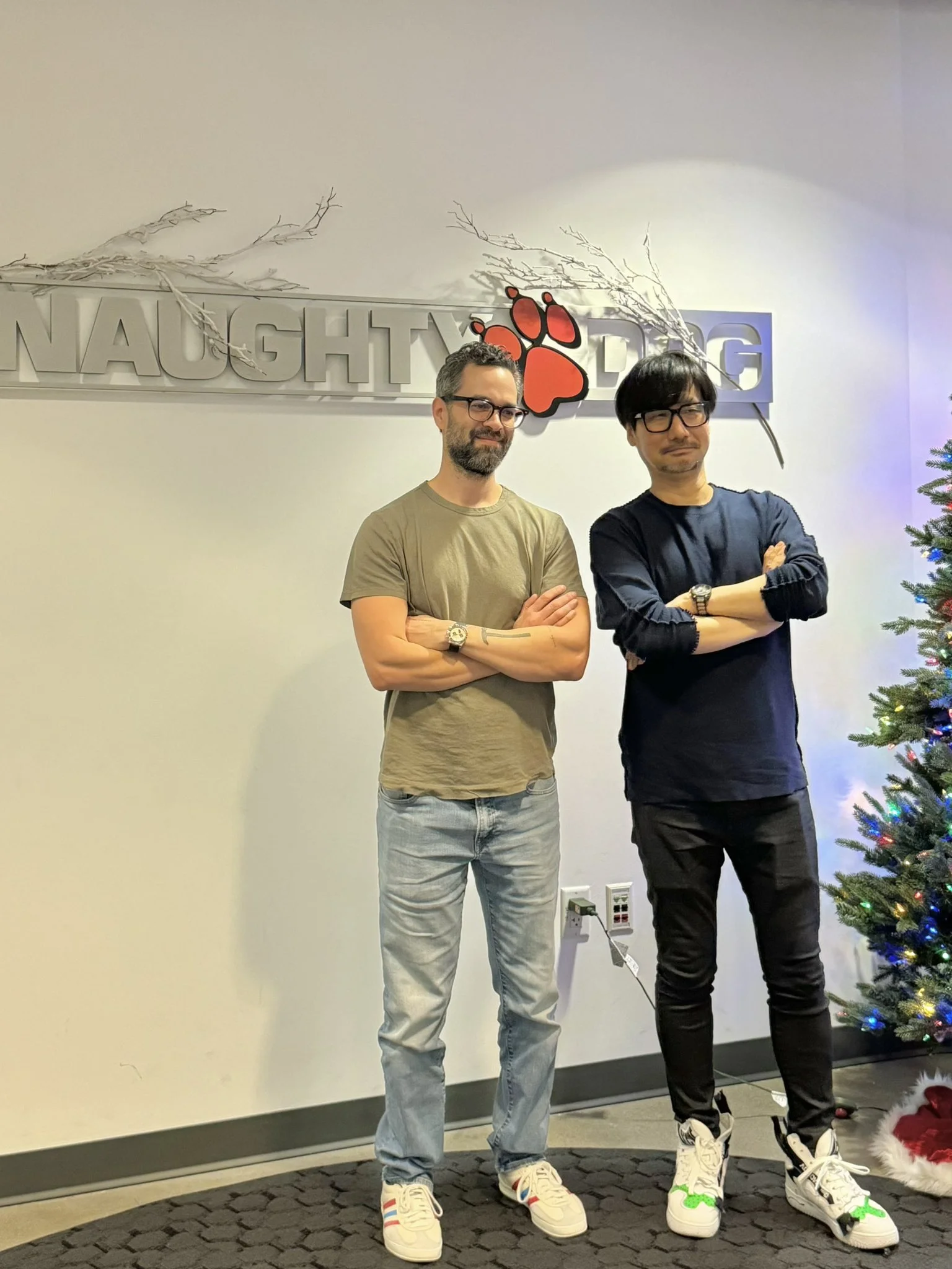 Гениальный геймдизайнер Хидео Кодзима посетил студию Naughty Dog, которая известна своими играми The Last of Us и Uncharted. Хотя Кодзима не раскрыл цель визита, он сделал несколько фотографий с Нилом Дракманном, бюстом щелкуна и логотипом студии.