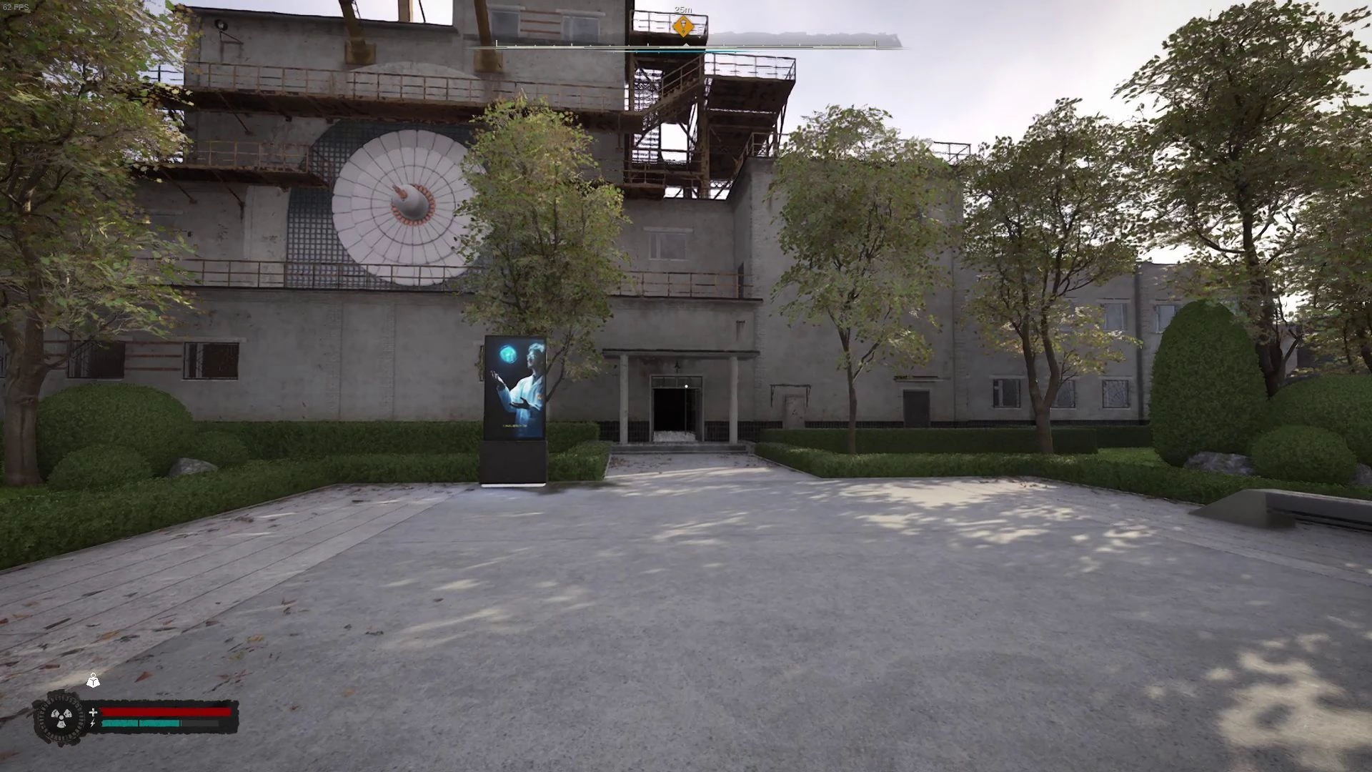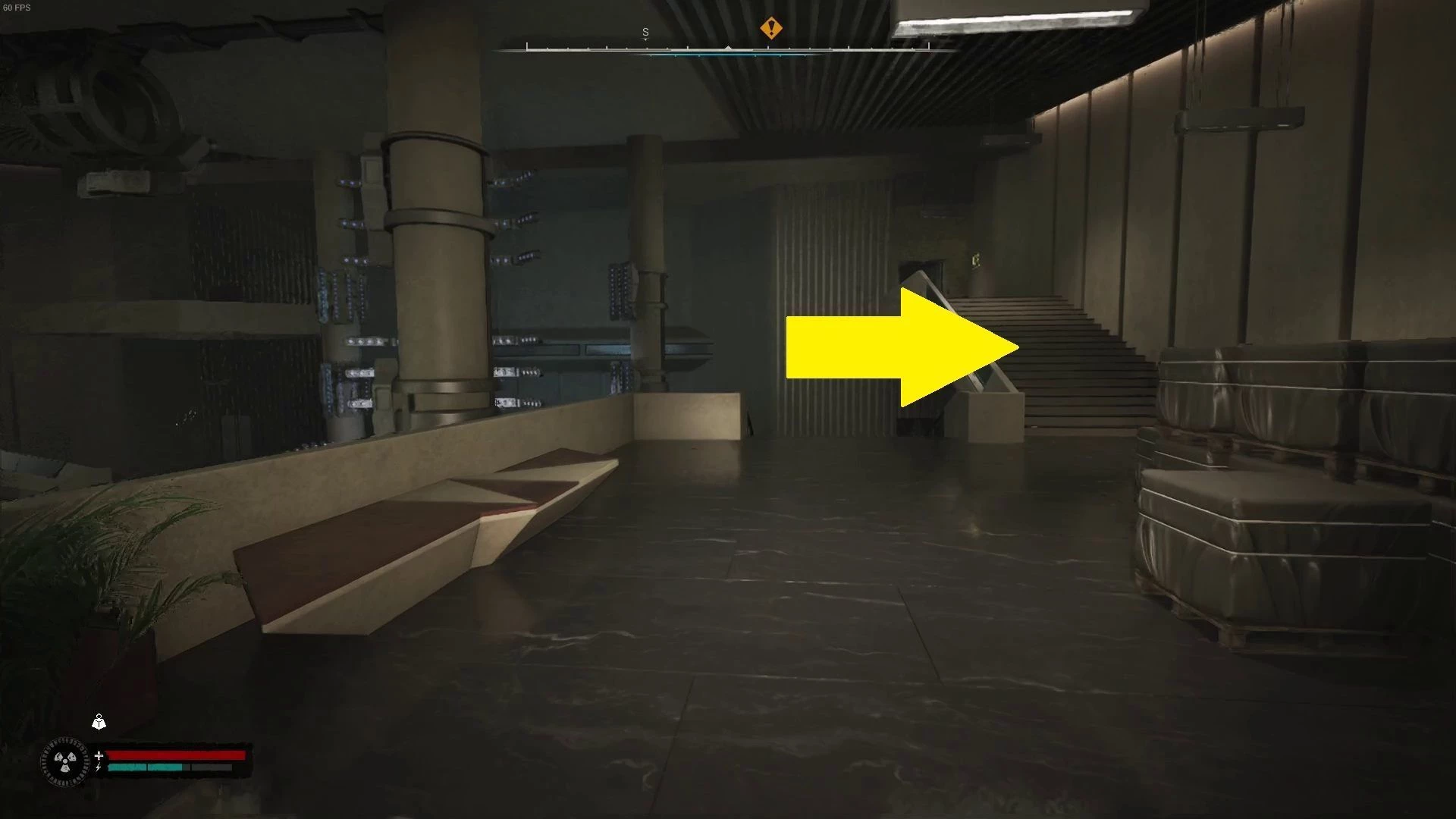 Войдите в здание и следуйте вправо к указателю миссии. В просторном помещении поднимитесь по лестнице.