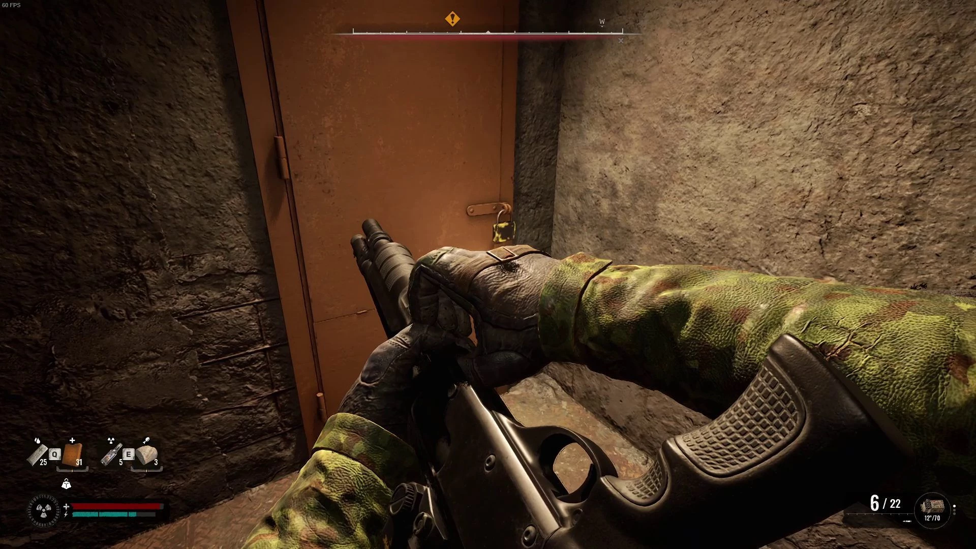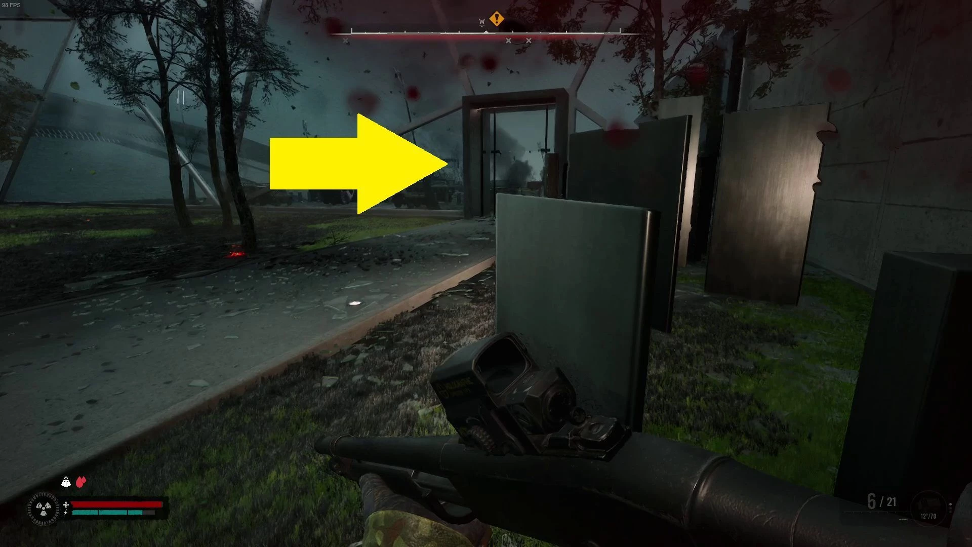 Продолжайте движение. Для открытия запертой двери выстрелите в замок и разрушьте доску.