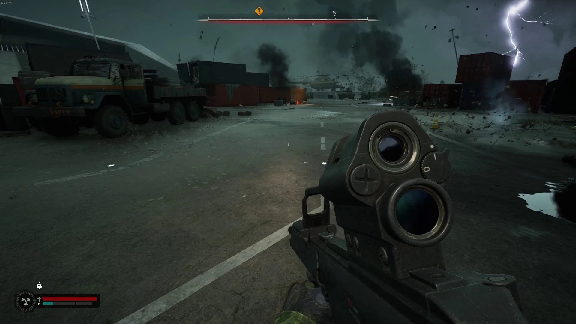 Затем бросьте болт в электрическую аномалию и быстро пройдите через стеклянную дверь. Вскоре вы окажетесь на дворе, где развернется битва между Стражем и Монолитом.