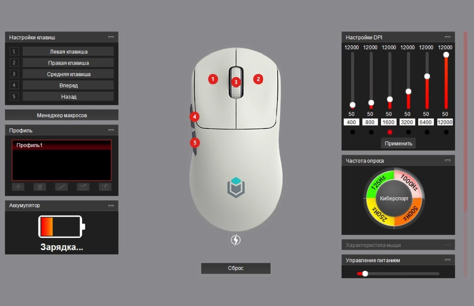Для настройки требуется скачать драйвер. В приложении имеется одна вкладка со всеми параметрами устройства. Можно настраивать кнопки, DPI, частоту опроса, установить таймер сна и другие параметры. Приложение функционально и заслуживает положительной оценки для бюджета мыши.