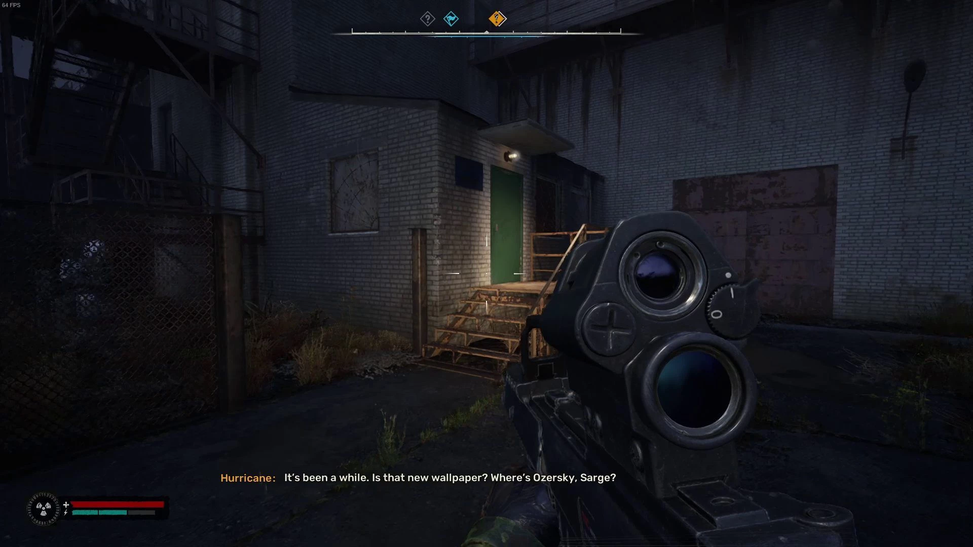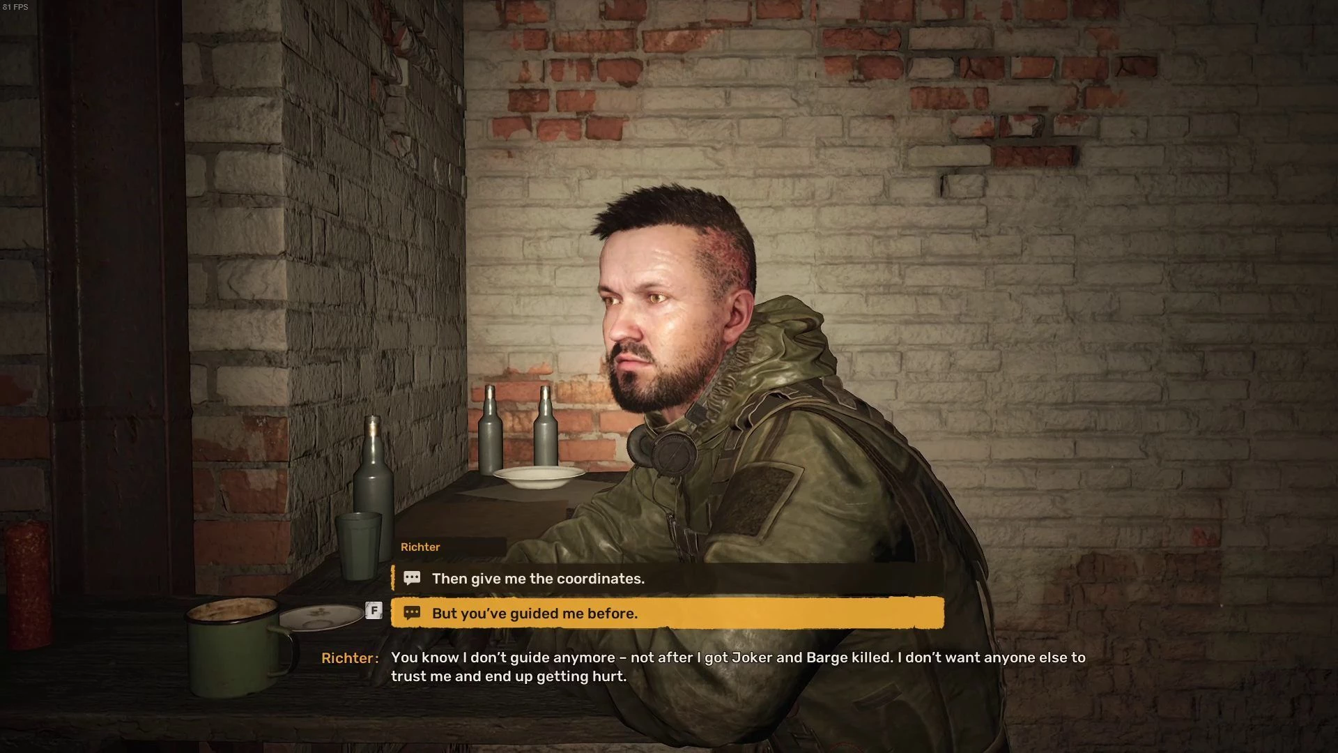 Вход в бар располагается в бетонном укрытии на южной стороне поселения. Войдите внутрь и побеседуйте с Рихтером.
