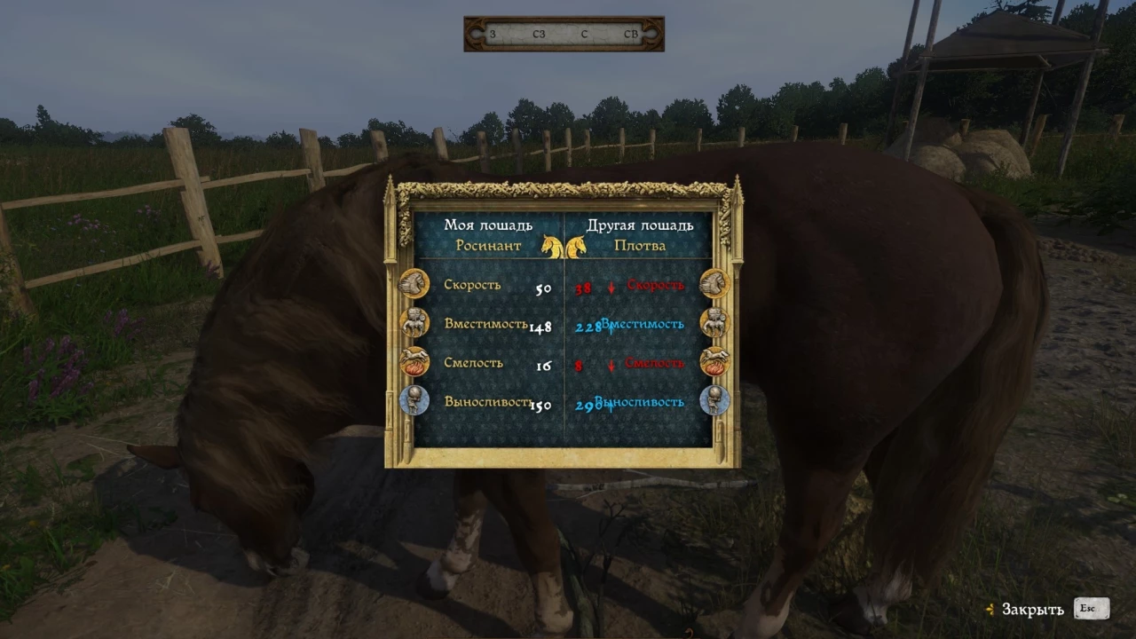 У лошадей, как и у вашего персонажа, есть свои характеристики, всего их четыре. Хотя скорость важна для любого скакуна, на самом деле на любом коне можно как убежать, так и догнать другого всадника. Рекомендуем обращать внимание на выносливость, чтобы дольше скакать, а также на вместимость, чтобы загружать лошадь добычей и другими ценными предметами.