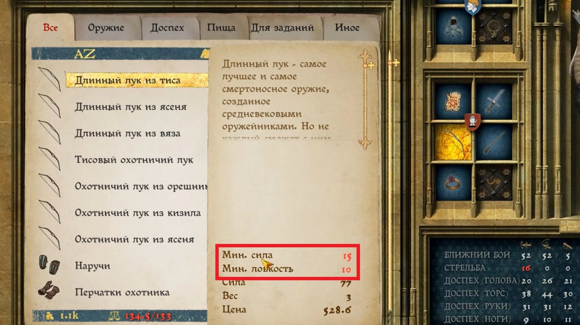 Не забывайте, что, как и для любого мощного оружия в Kingdom Come, этот лук требует определенного уровня силы и ловкости.