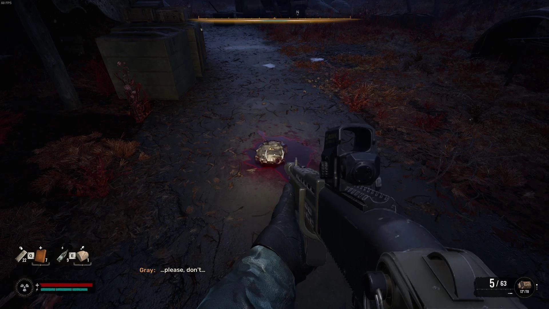 Когда вы приблизитесь к этой локации, на вас нападут псионические коты. Сражайтесь с мутантами, а затем осмотрите окровавленный рюкзак Грея, чтобы забрать КПК. Рюкзак расположен посередине дороги в центре области поиска на карте.