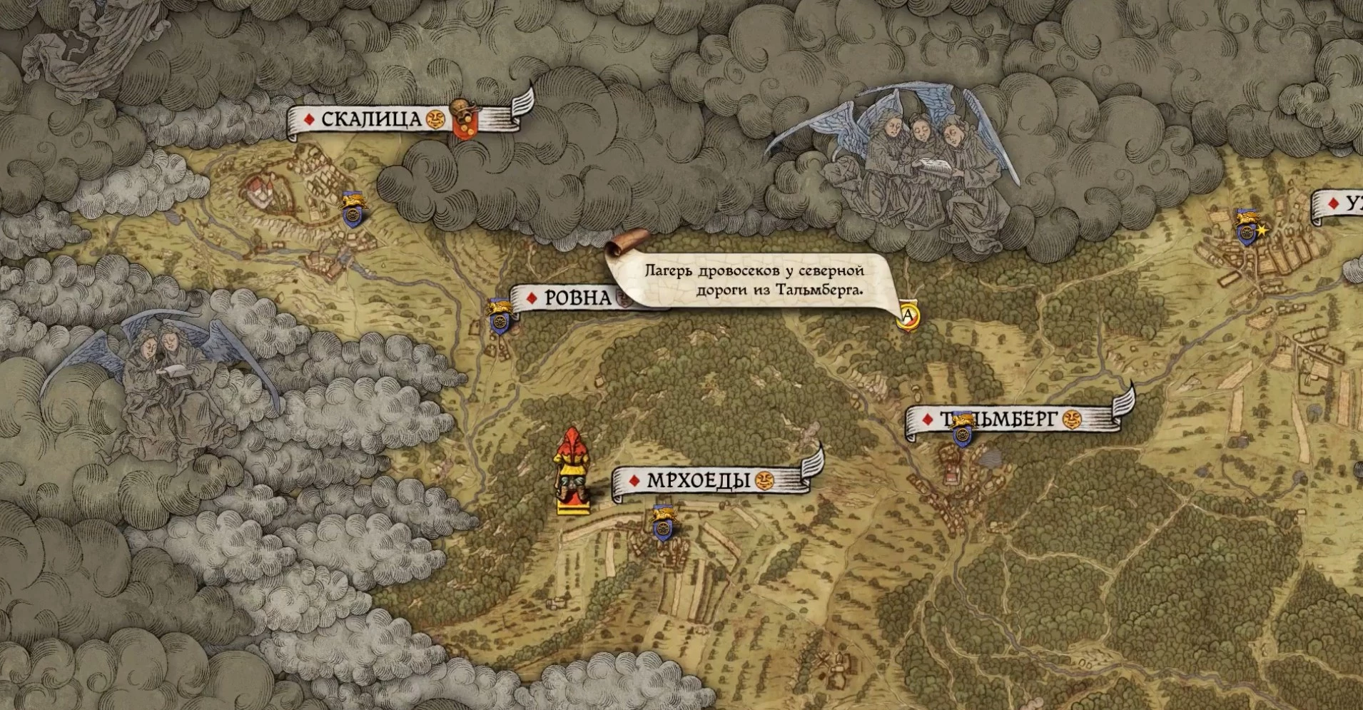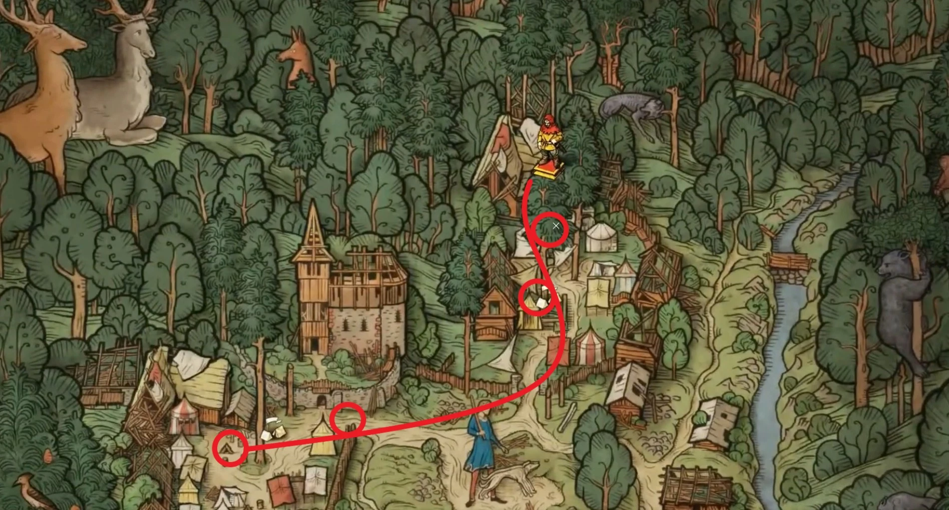 Чтобы найти лагерь «Змеиное гнездо», вам, возможно, придется действовать практически наугад, так как нужная часть карты может быть еще недоступна. Начните путь с лагеря дровосеков к северу от Тальмберга, где появится метка задания. Хотя запоминать маршрут не обязательно: по мере приближения к каждому указанному Пето месту, журнал заданий будет обновляться, добавляя новые контрольные точки, пока вы не доберетесь до цели.