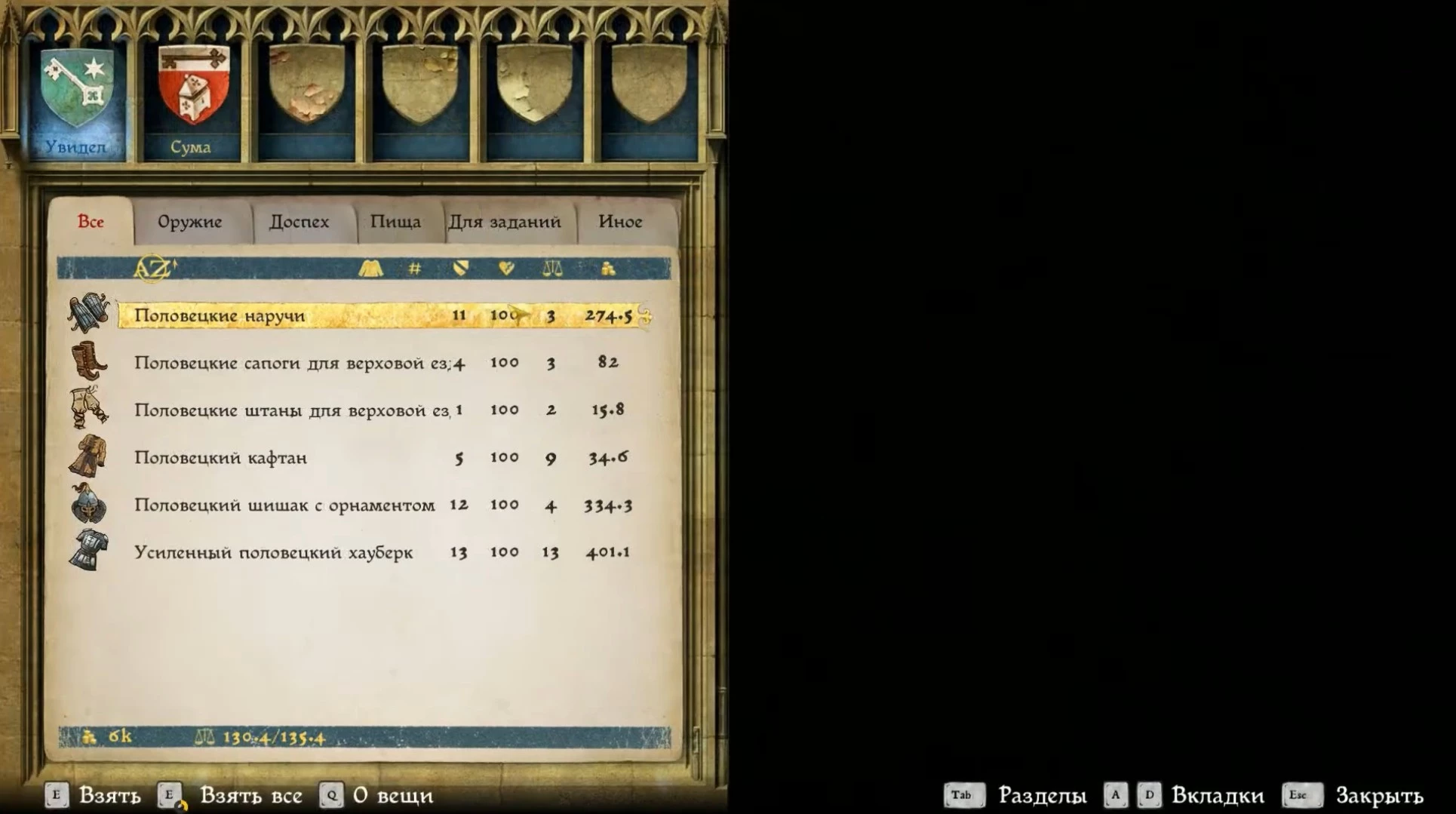 Полный комплект половецкой брони лежит в сундуке внутри сарая, а на бочке напротив стоит яд.