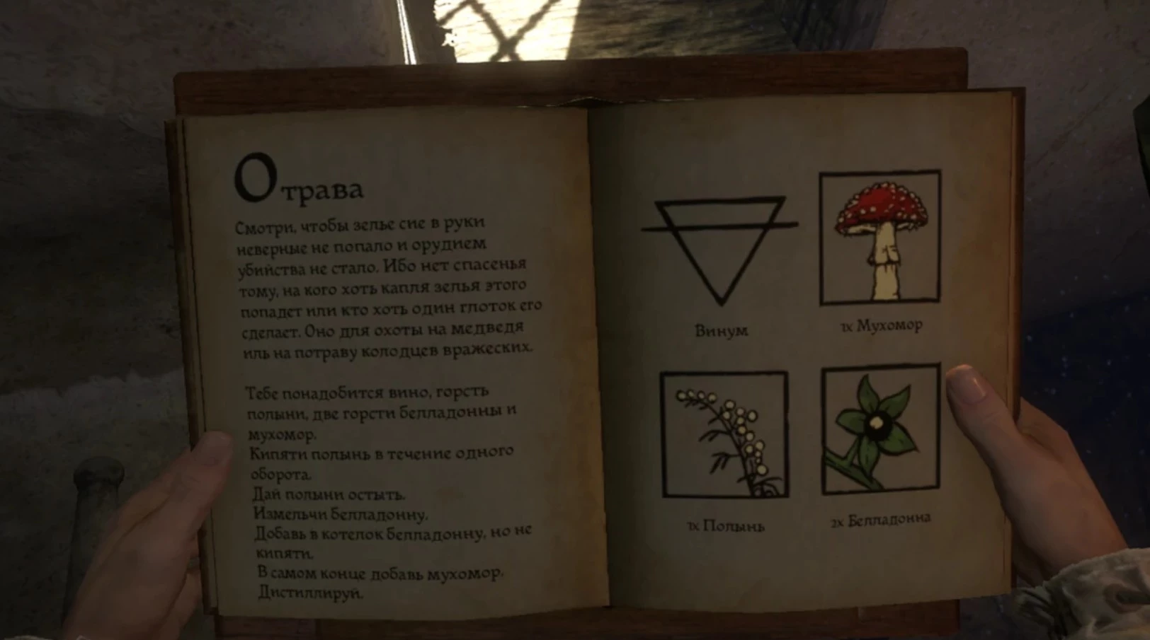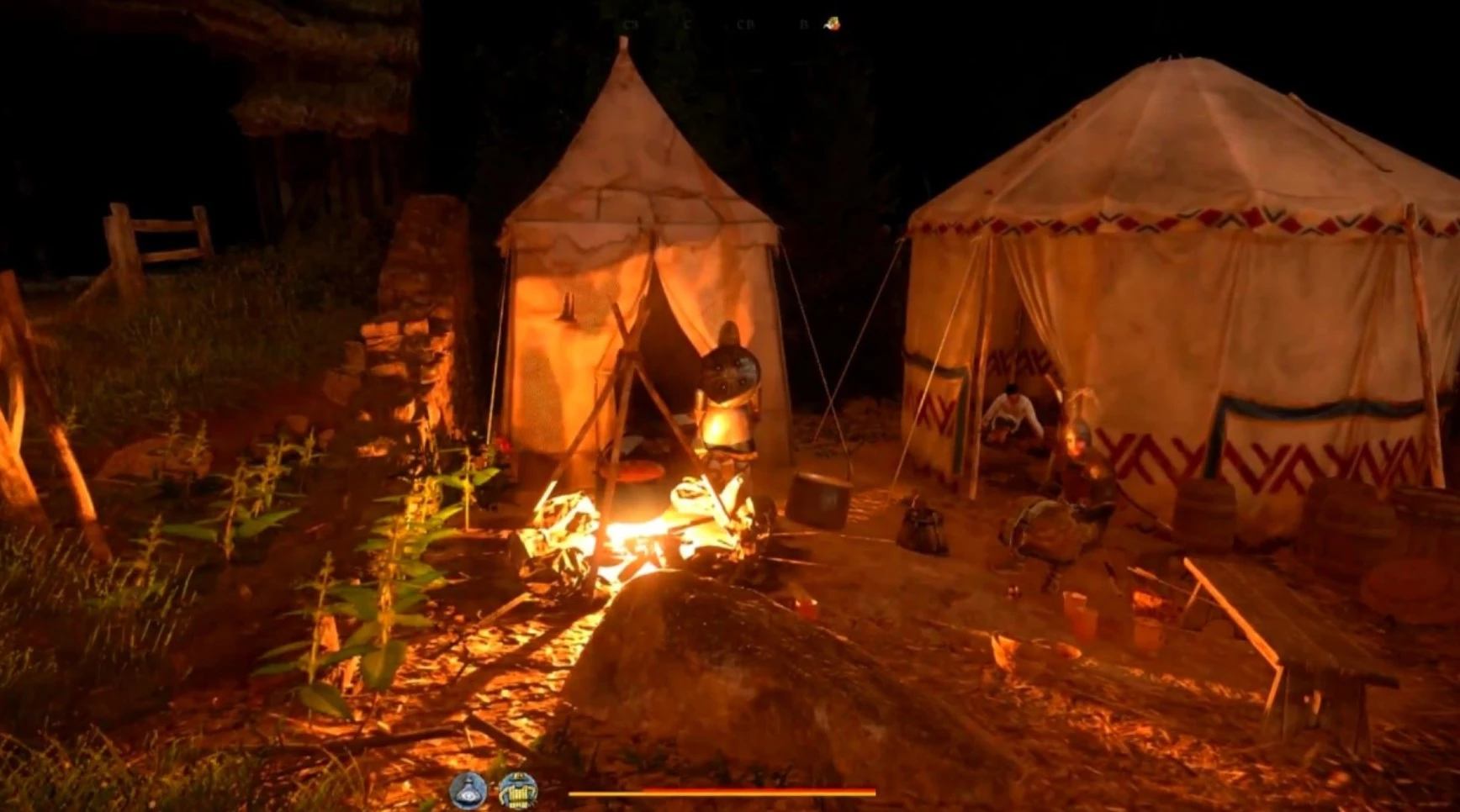 Котлы легко найти ночью, так как они стоят на кострах. Подойдите к котлу и, вместо одного нажатия клавиши приема пищи (по умолчанию — Е), удерживайте ее. Откроется инвентарь, где можно выбрать яд или отраву. На каждый котел уходит один флакон.
