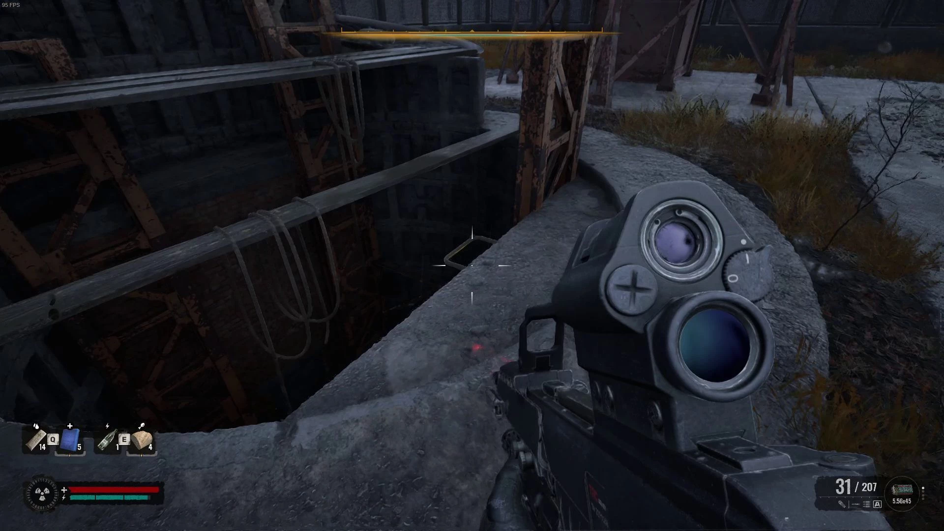 Пройдите мимо обломков вертолета и спуститесь в шахту по лестнице.